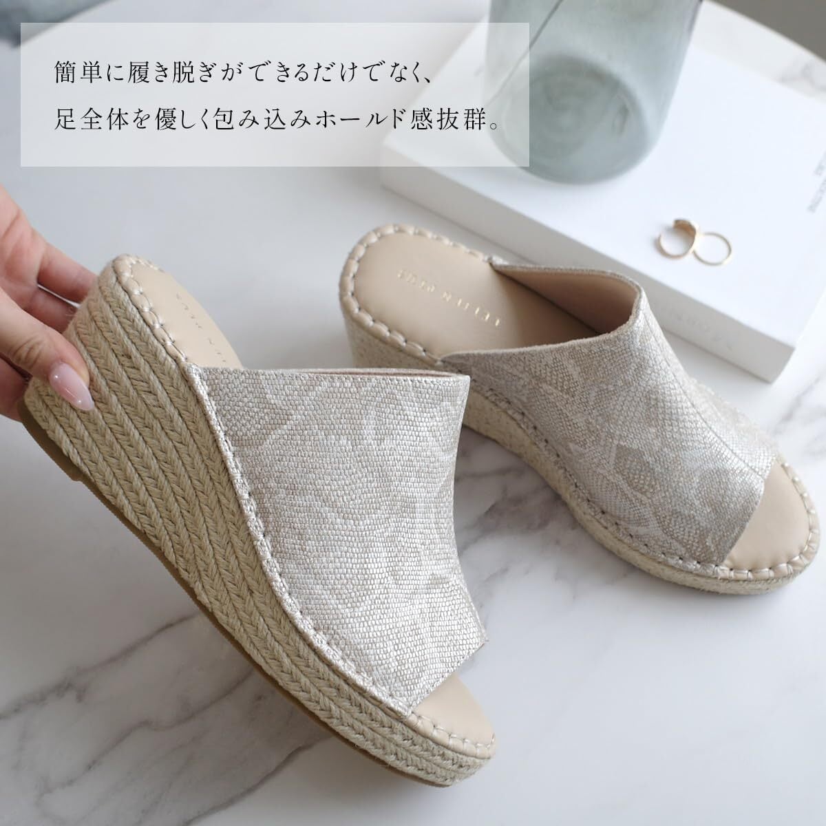 [アミアミ] サンダル ジュートサンダル サボサンダル ウエッジソール ミュール 7.5cmヒール レディース サボ 夏 厚底サンダル FX010