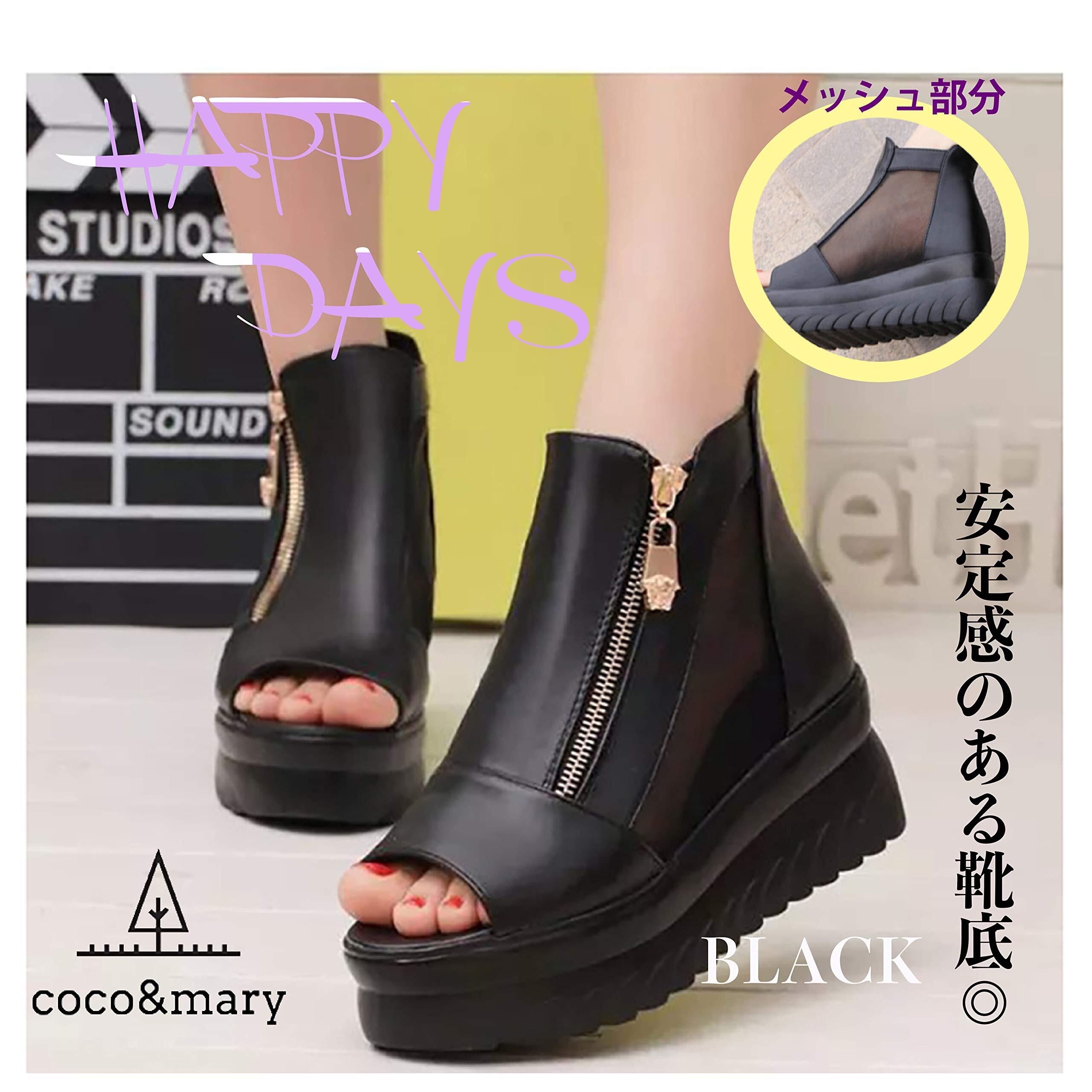 [ココマリ] 厚底 靴 シューズ 軽量 サンダル おしゃれ ショート ブーツ ヒール ウェッジソール スニーカー レディース
