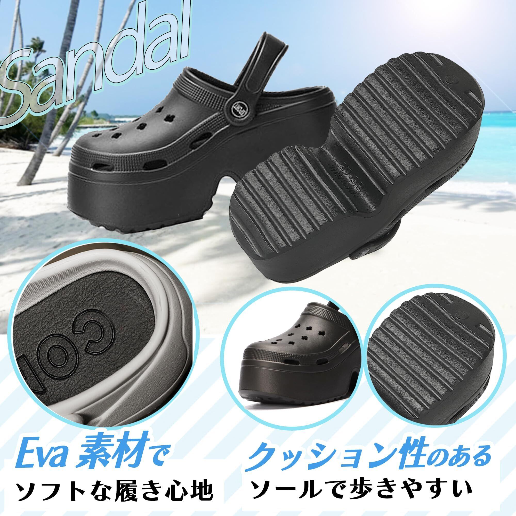 かわいい厚底サンダル。7cmのヒールで脚長効果抜群。柔らかく歩きやすいEVA素材。オフィスサンダル、ナースサンダルとしても使えます。