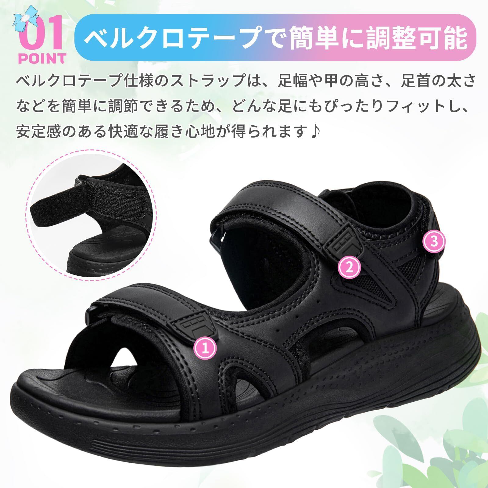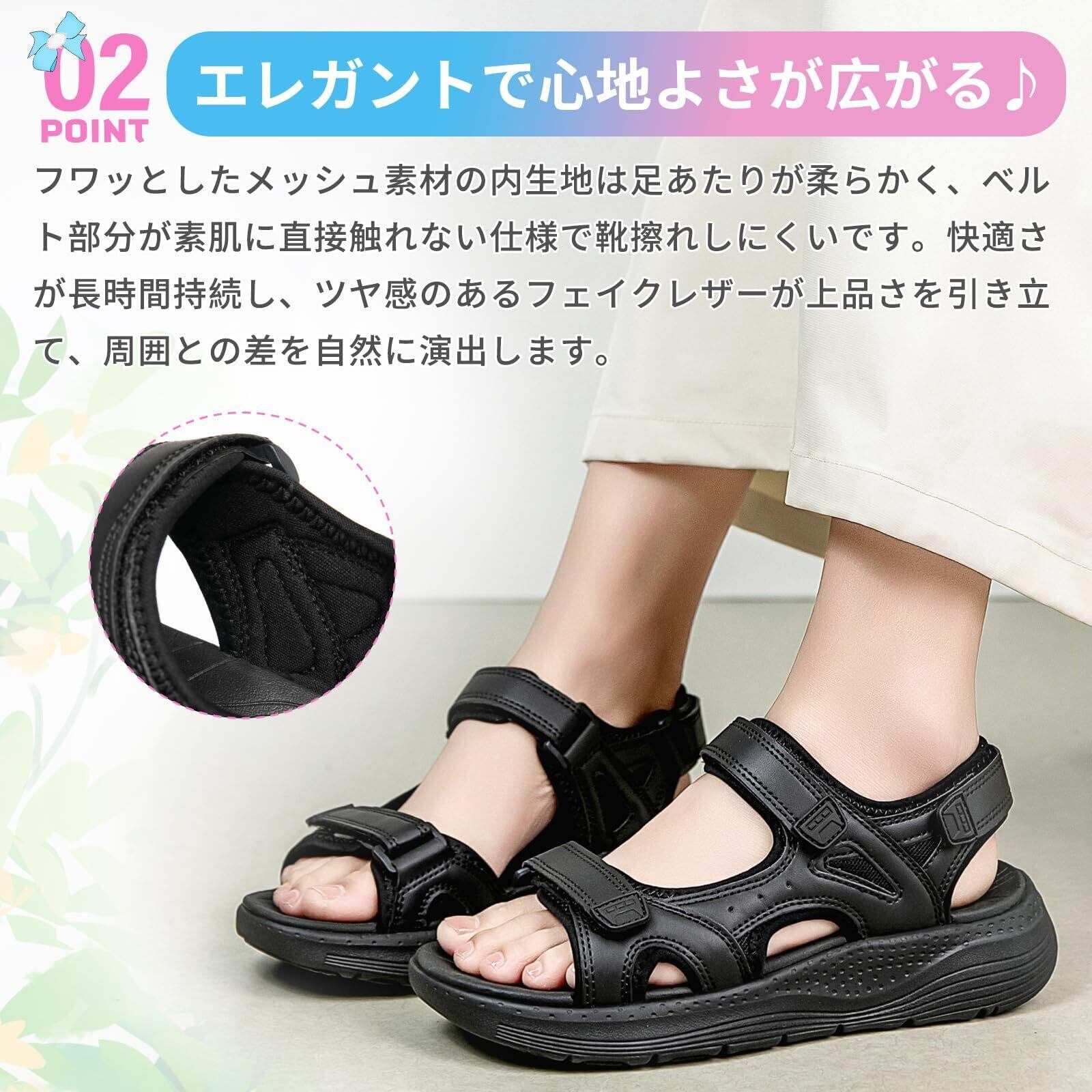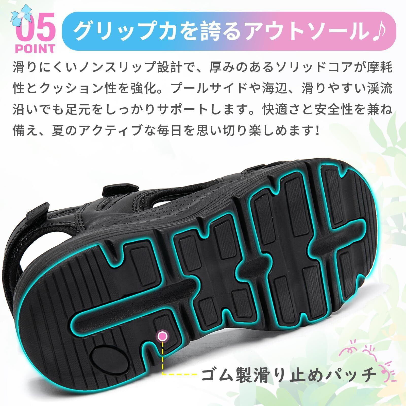 【流行りのスニーカーサンダル】甲部分を覆うデザインでスニーカー感覚。メッシュ素材なので夏は涼しく快適、蒸れにくいので心地良く履けます。甲を覆うので、靴下とも相性がよく、スニーカーのようなウェアリングができる,かわいい便利なサンダルです!