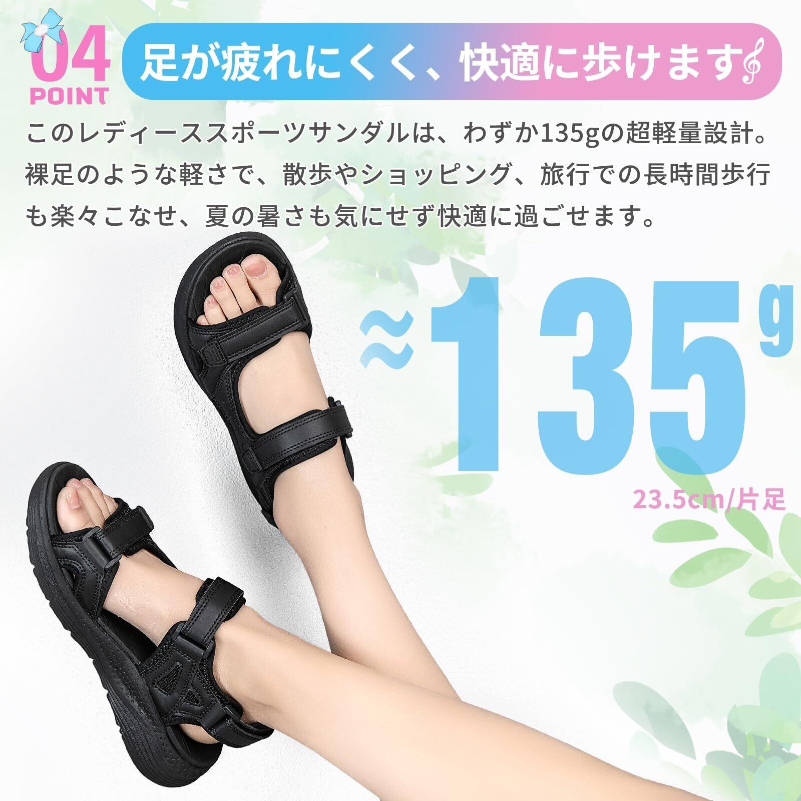 【軽量設計で歩きやすいスポーツサンダル】なんと片足の重さが約175g!アッパーには合成繊維を使用しており、質感が良くお手入れも簡単です。軽量で履き心地良く、様々なシーンで活躍してくれます。