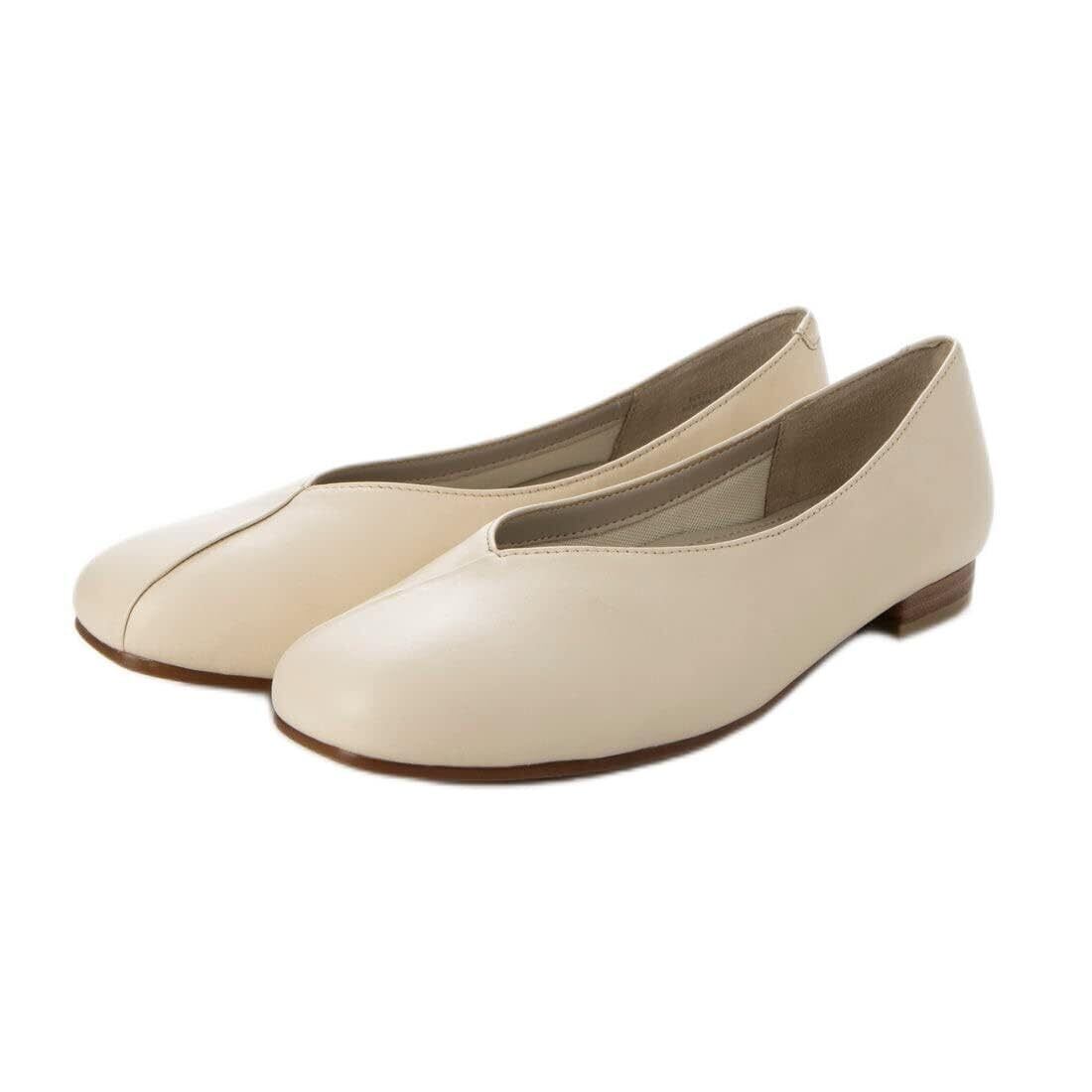 Vカットの履き口がポイントのフラットシューズ。