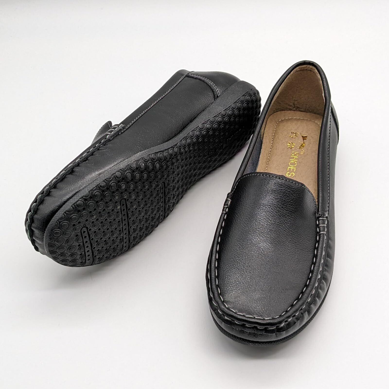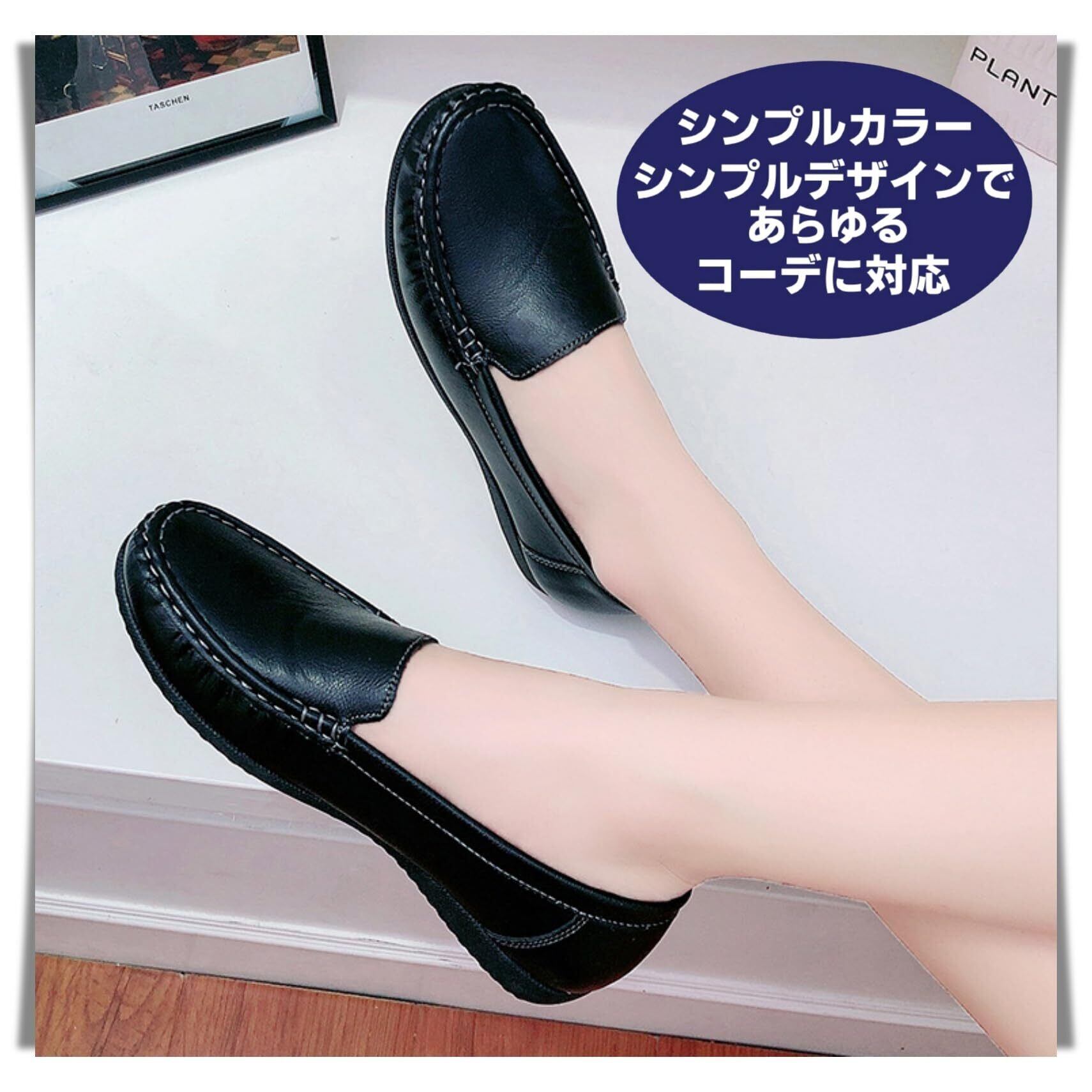 シンプルで飽きのこないデザインとシンプルカラーが幅広いコーデに使える!レディースモカシンシューズです。