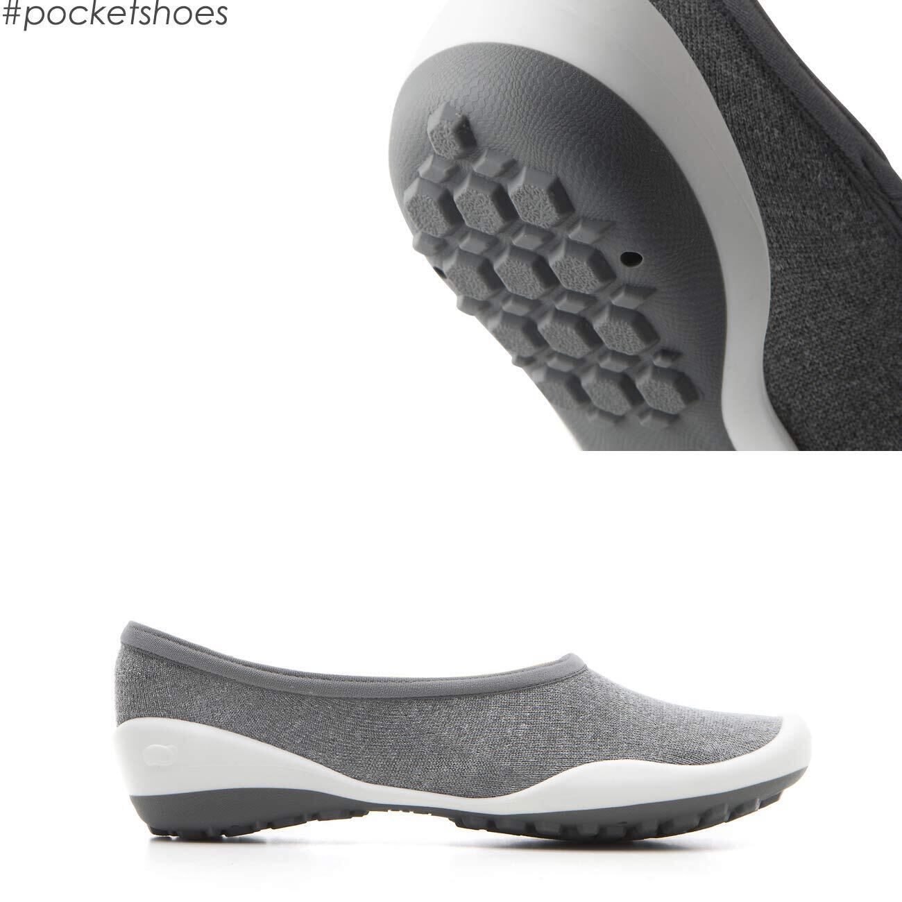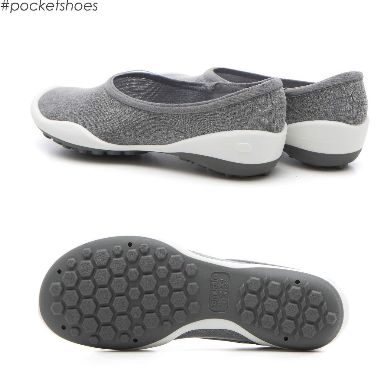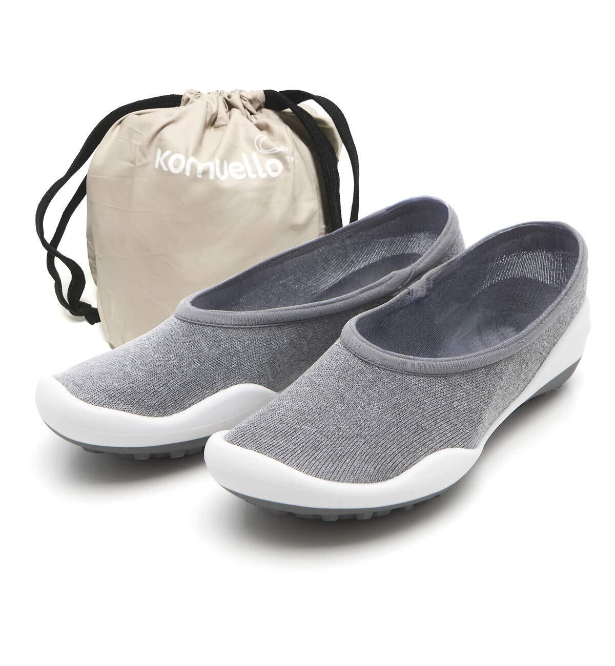 [KOMUELLO] レディースシューズ 超軽量 オフィスシューズ フラットシューズ 「ポケットシューズ」 グレー ポーチに入れ 持ち運び さまざまなシーンで 大活躍 女性 【2021年】Flat Grey 23cm