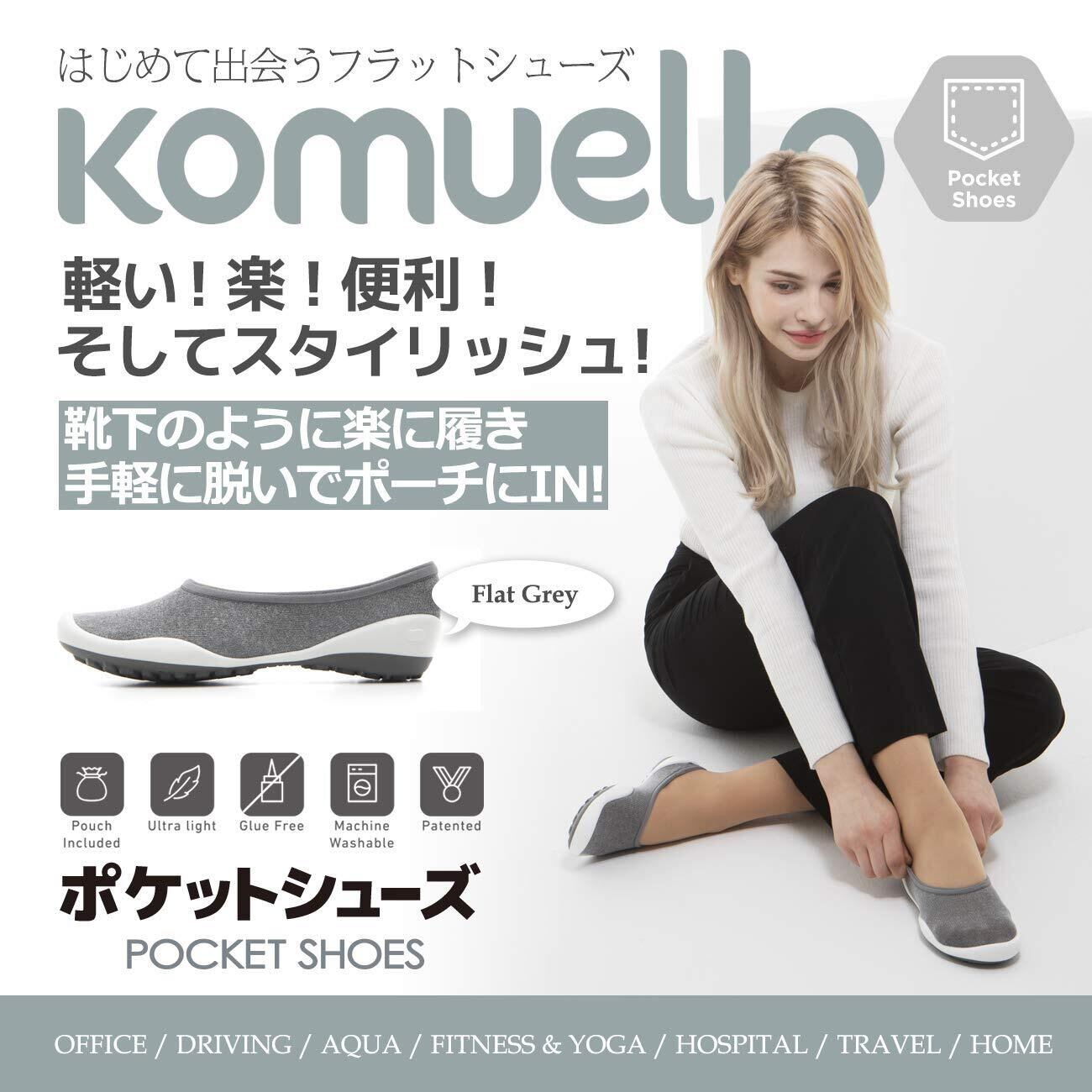 【人気商品】[KOMUELLO] レディースシューズ 超軽量 オフィスシューズ フラットシューズ 「ポケットシューズ」 グレー ポーチに入れ 持ち運び さまざまなシーンで 大活躍 女性 【2021年】Flat Grey 23cm | 無意味ステッカー