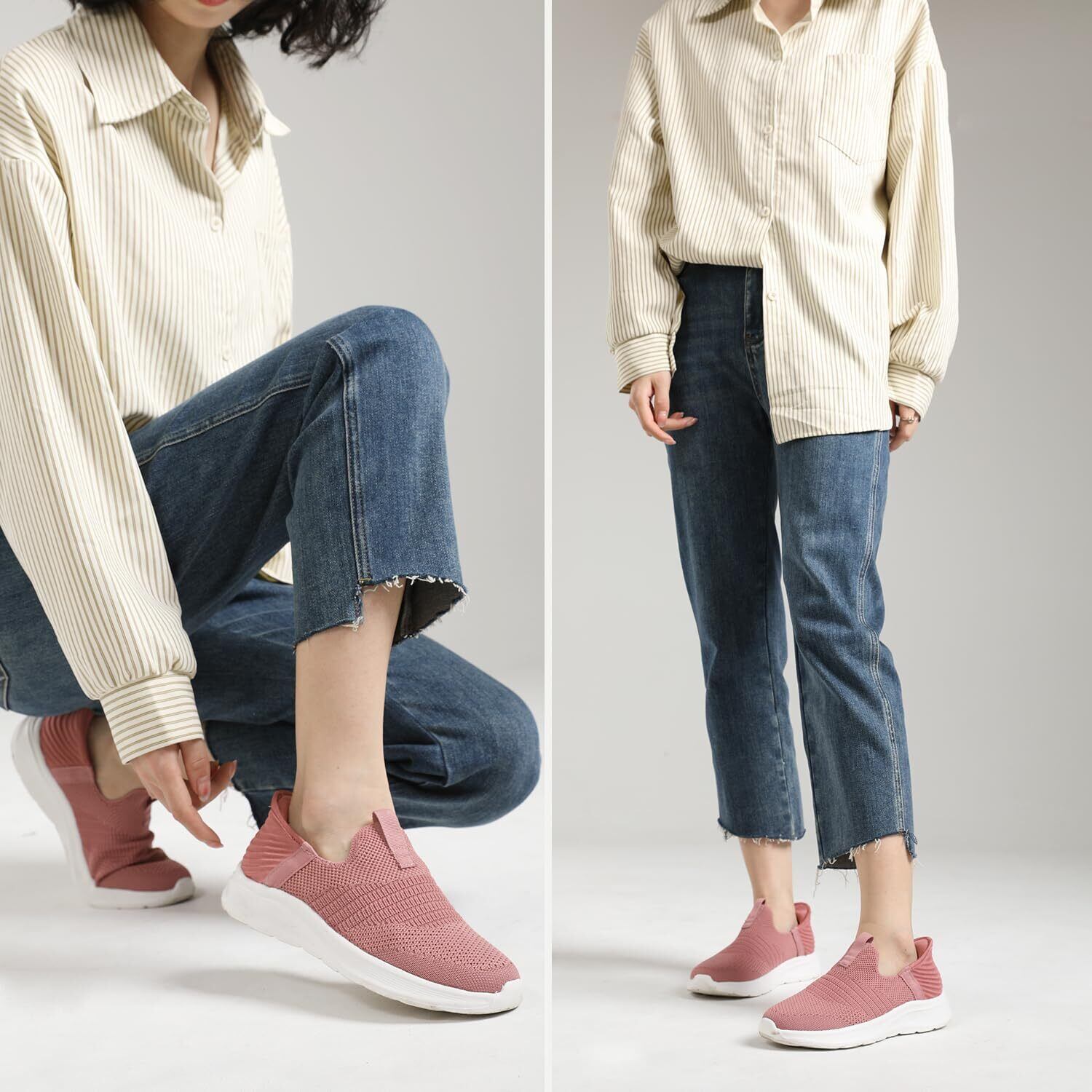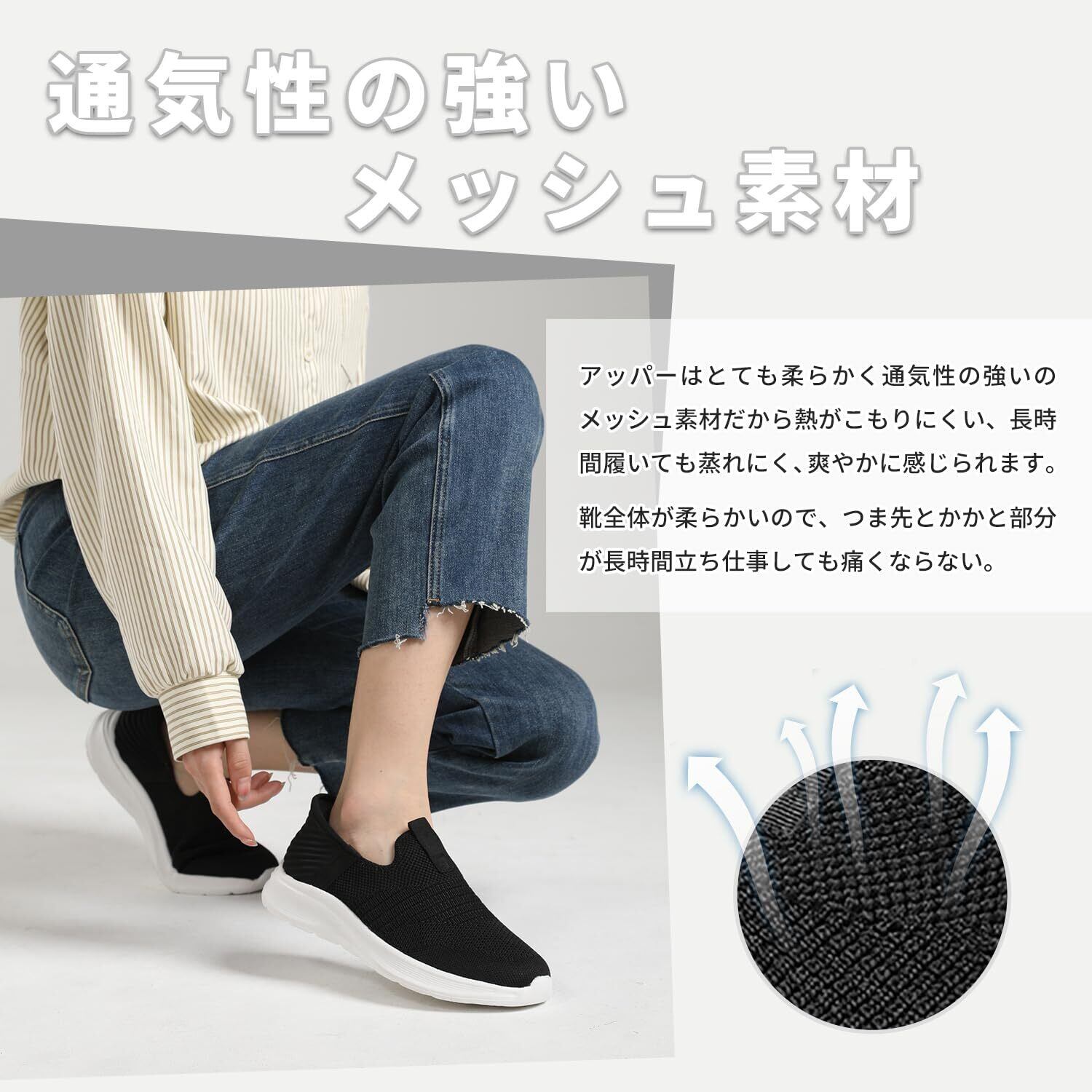 【特価商品】【立ったまま履ける】 スニーカー 靴 スリッポン レディース 軽量 手を使わず ハンズフリー スッと履ける ウォーキングシューズ ランニングシューズ 体育館シューズ 紐なし 高齢者 | 無意味ステッカー