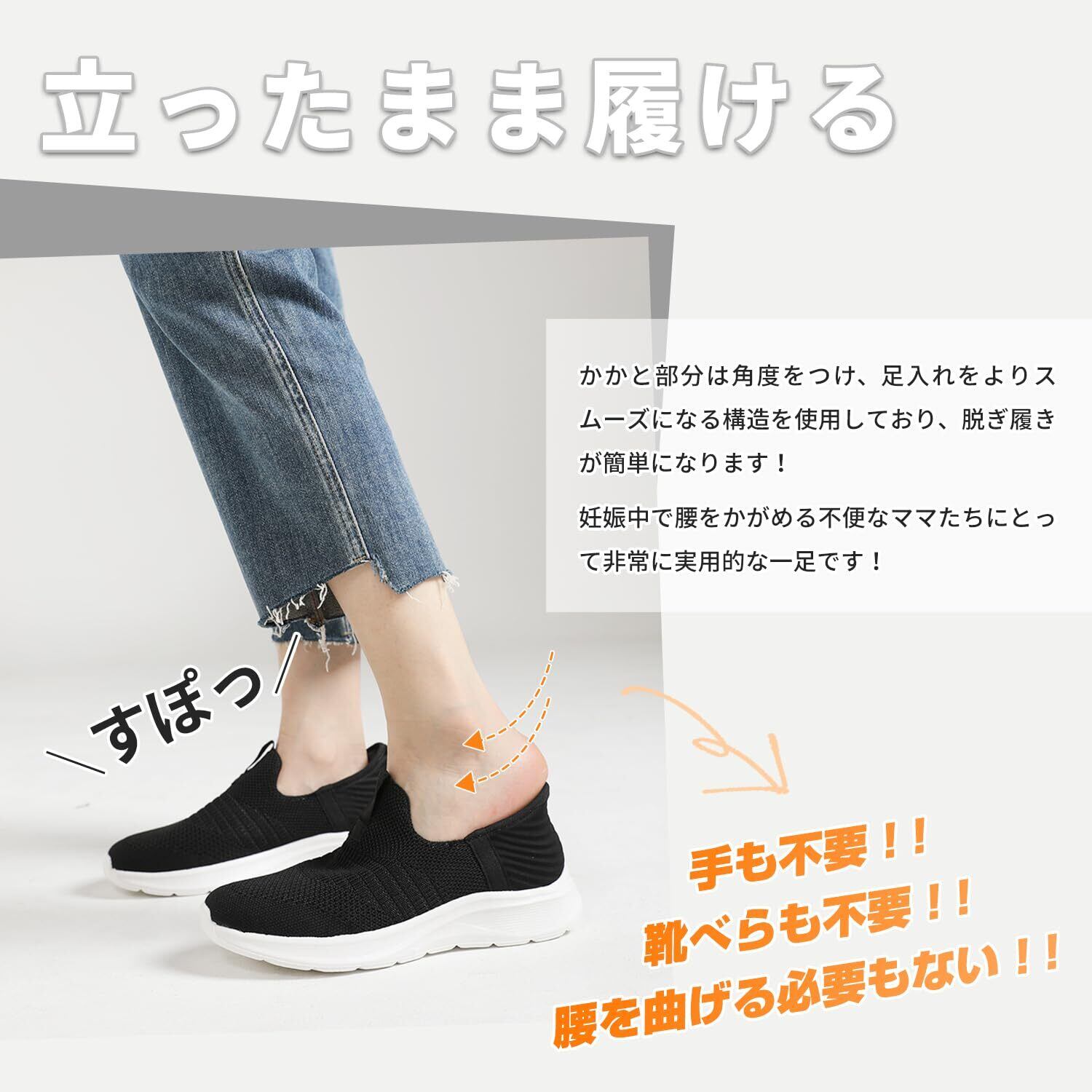 【立ったまま履ける】 スニーカー 靴 スリッポン レディース 軽量 手を使わず ハンズフリー スッと履ける ウォーキングシューズ ランニングシューズ 体育館シューズ 紐なし 高齢者