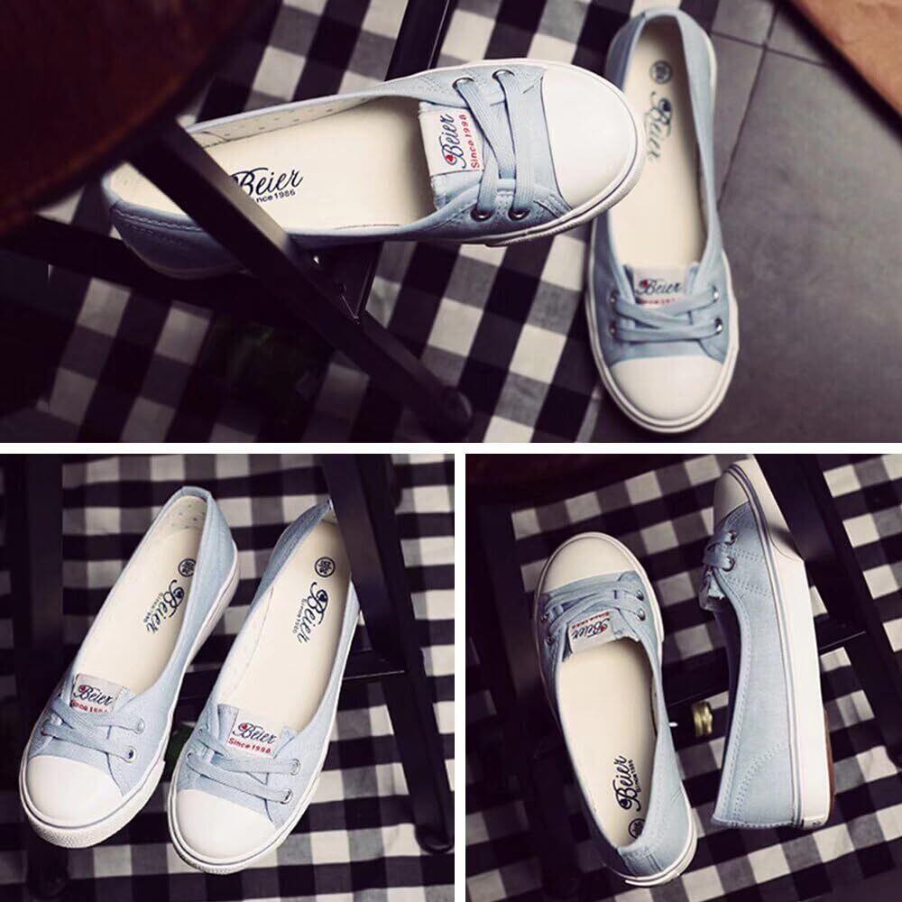 [YoniStar] レディース 浅い キャンバス シューズ ローファー 夏 通気性 カジュアル スニーカー スリッポン