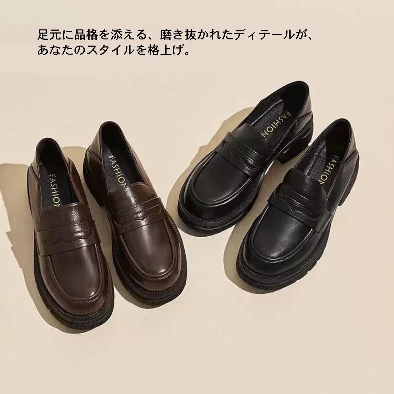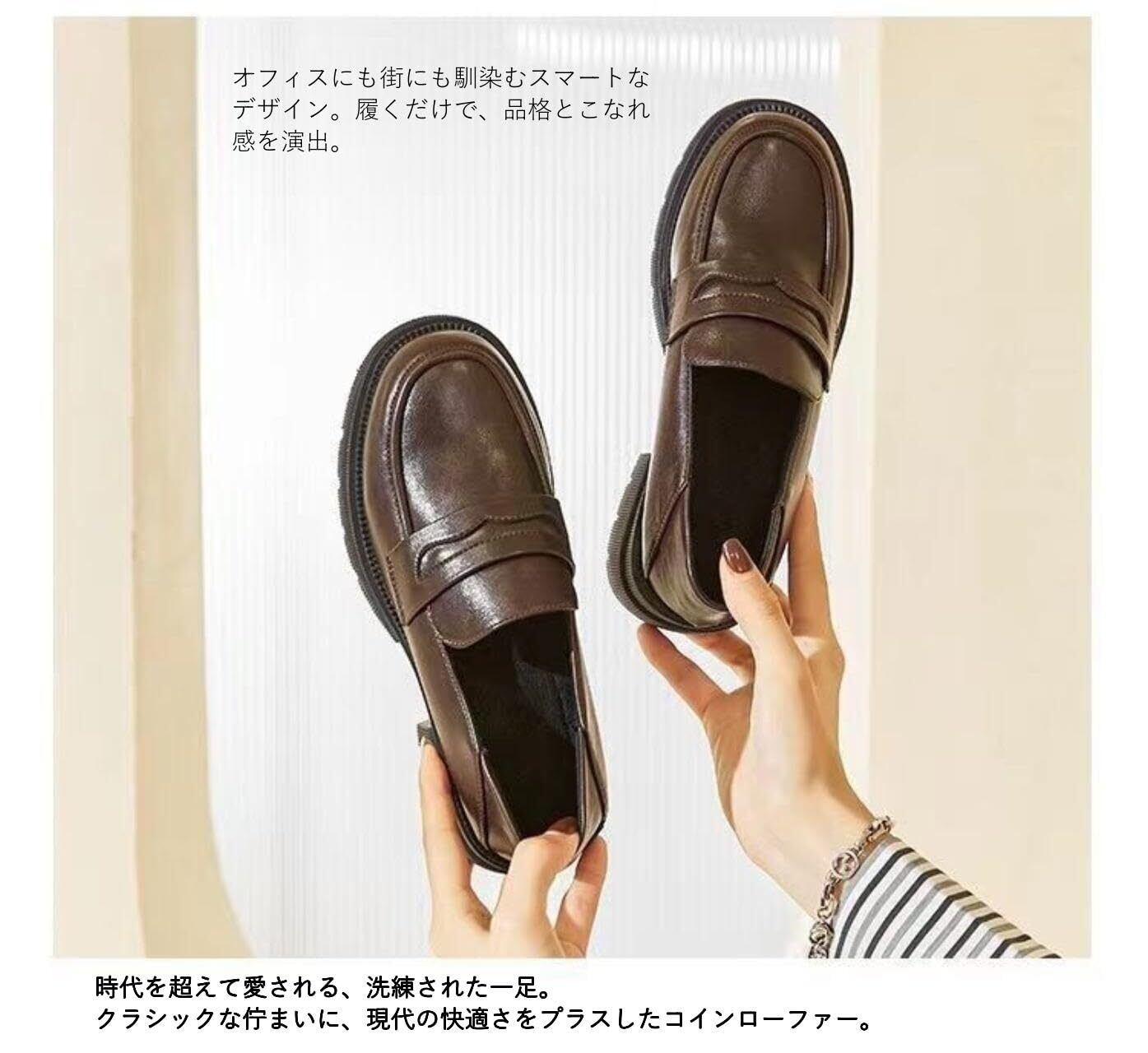 [goodspoon] コインローファー シンプル 厚底 快適 シューズ レディース カジュアル 学生 定番 オシャレ