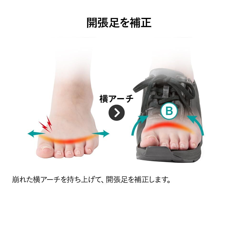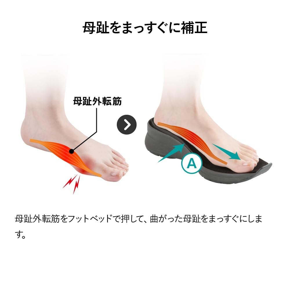 曲がった母趾をやさしく補正する専用インソールだから、母趾と足裏にかかる負担を軽減します。