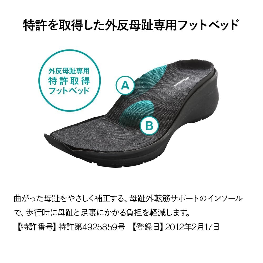 母趾に当たりにくい、ゆとりあるつま先形状で、足指が変形している方でも負担なく楽に歩けます。