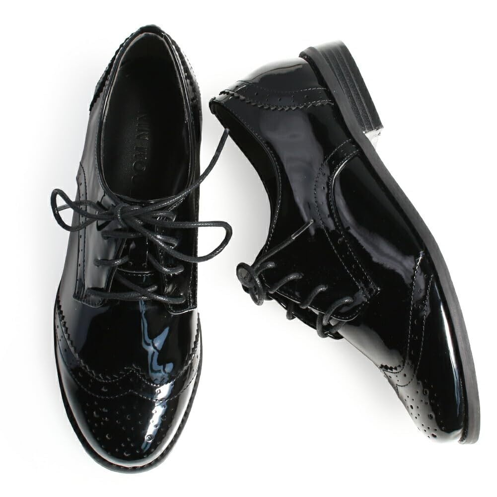 [ルームナイン] ウィングチップ トラッド オックスフォード ドレス シューズ レディース マニッシュ おじ靴 ローヒール レースアップ パンプス (sz-2856)