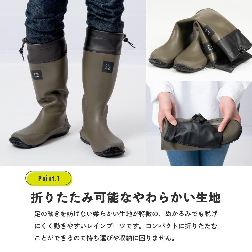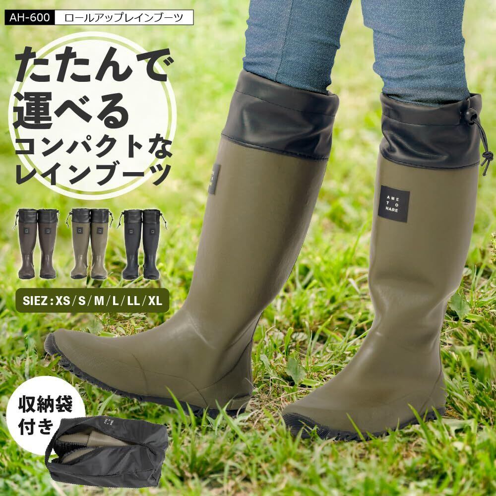 [アメトハレ] レインブーツ 長靴 ロング 折り畳み 男女兼用 収納袋付 AH-600 ロールアップレインブーツ