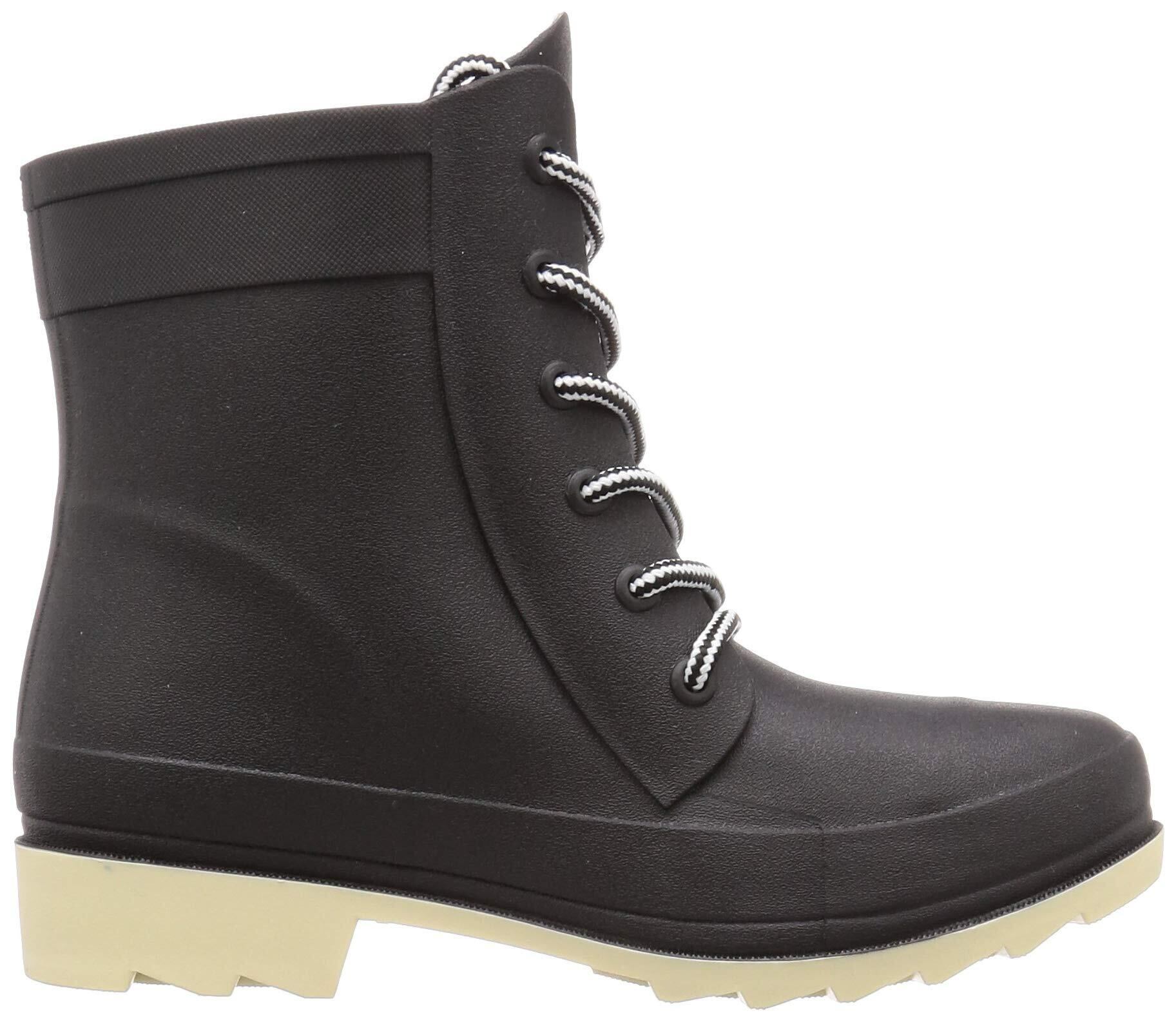 雨でも晴れでも履きたくなるレインブーツができました! 一見ワークブーツのようですが、軽くて柔らか、しっかり防水できるレインブーツなんです。膝下の長靴だといかにもという感じで抵抗がある方も、気軽に履いていただけるようにデザインしました。靴ひもを通す部分は一体成型で作られていて切れ目が無い為、つなぎ目から雨水が入り込む心配はありません。素材は車のタイヤにも使われるSBRを使用。フィット性・耐久性に優れ、天然ゴムより軽量化を実現しました。取り外しできるインソール付です。軽量で柔らかい長靴のメリットは一般的な長靴よりもガバガバすることなく程よくフィットし脱げにくい点。なので、ぬかるんだ場所や雨の日でもアクティブに活動する、釣りやアウトドア、トレッキングや夏フェスでも動きやすさを体感頂けると思います。靴ひもは飾りなので履くたびに結ぶ必要はなく、スポっと簡単に履くことができます。ユニセックス、男女兼用でフェスなどの野外イベントでも活躍する一足です。ショート丈で場所を取らないので学校や会社の置き靴としてもうれしいですよね。学校などの靴箱にも入る長さだと思います。雨が心配な旅行や野外フェス、キャンプなどレジャーで持ち運びにも適しています。もちろん晴れの時に履いていてもおしゃれなデザインなので、自転車での通勤、通学の際も、晴雨兼用で違和感なく履けるおしゃれなレインブーツをぜひお試しください。