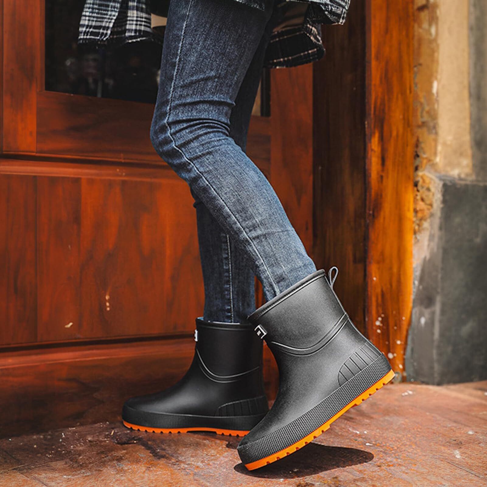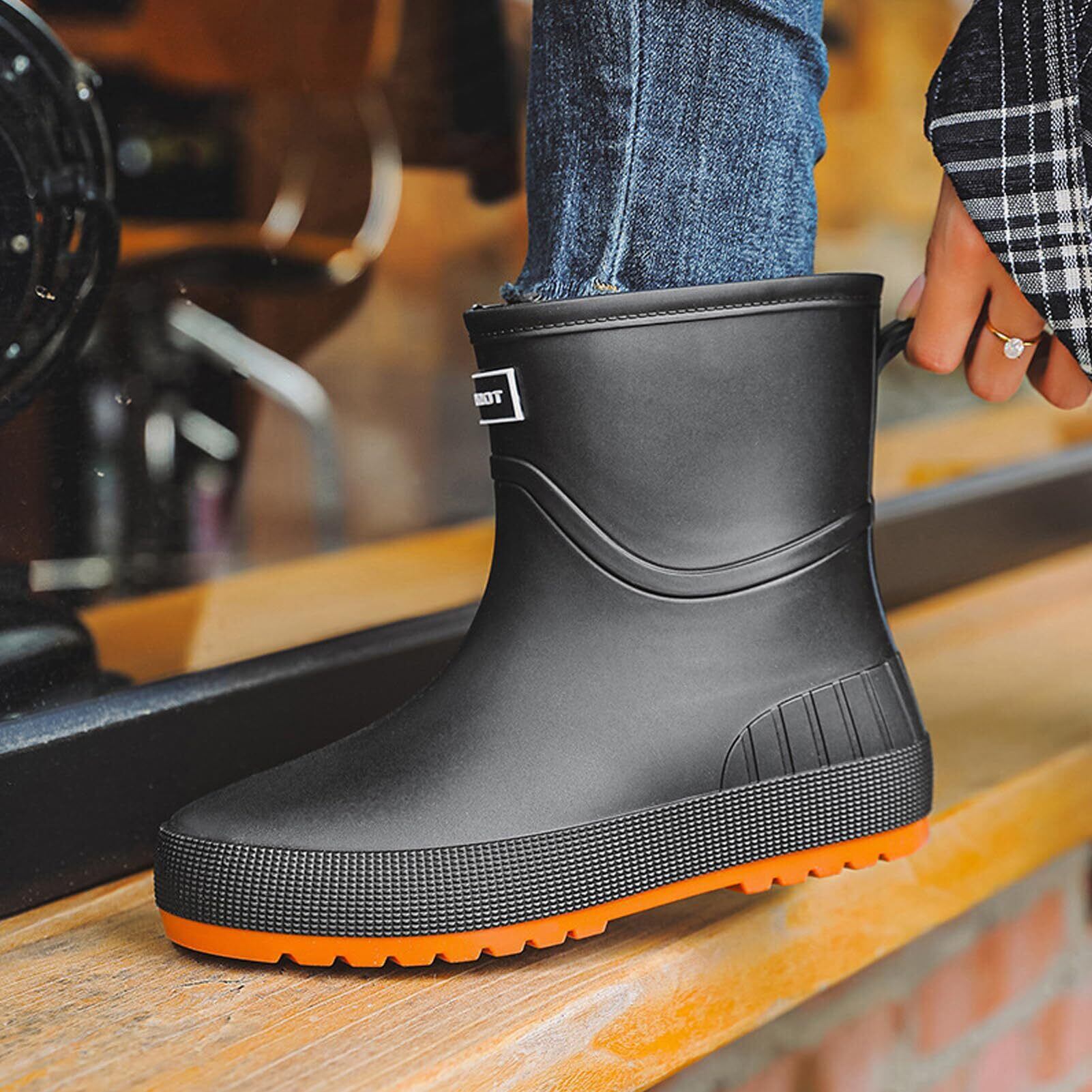 【優れた滑り止め性能】特殊防滑ソールを採用し、濡れた地面でもしっかりグリップ。特殊な凹凸パターン設計により、転倒のリスクを軽減し、大雨時の通勤や屋外作業時にも安心してお使いいただけます。