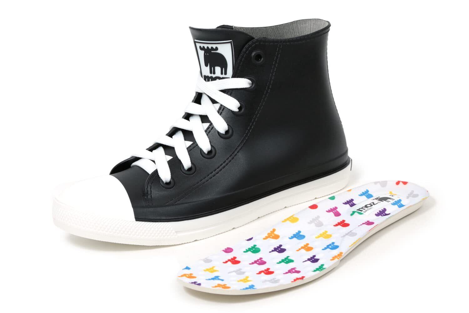 [アキリコ] モズ MOZ レインシューズ スニーカー 一体成型 ハイカット レースアップ レディース カラフルなオリジナルインソール付き