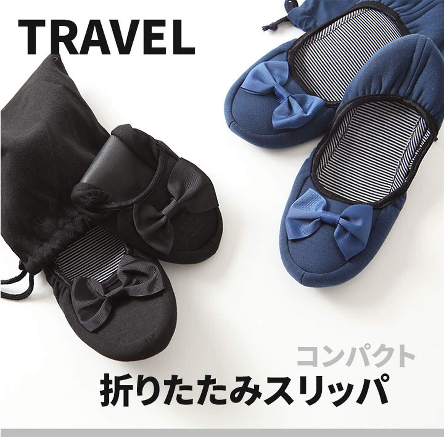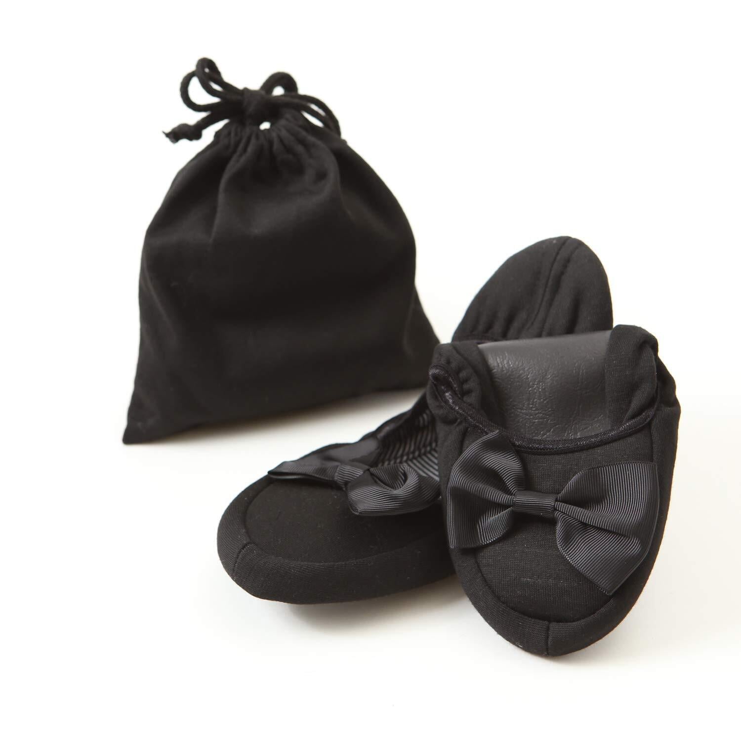 [ロジック] 携帯スリッパ レディース 洗える 折りたたみ 参観日 入学式 卒業式 黒 収納ポーチ付き