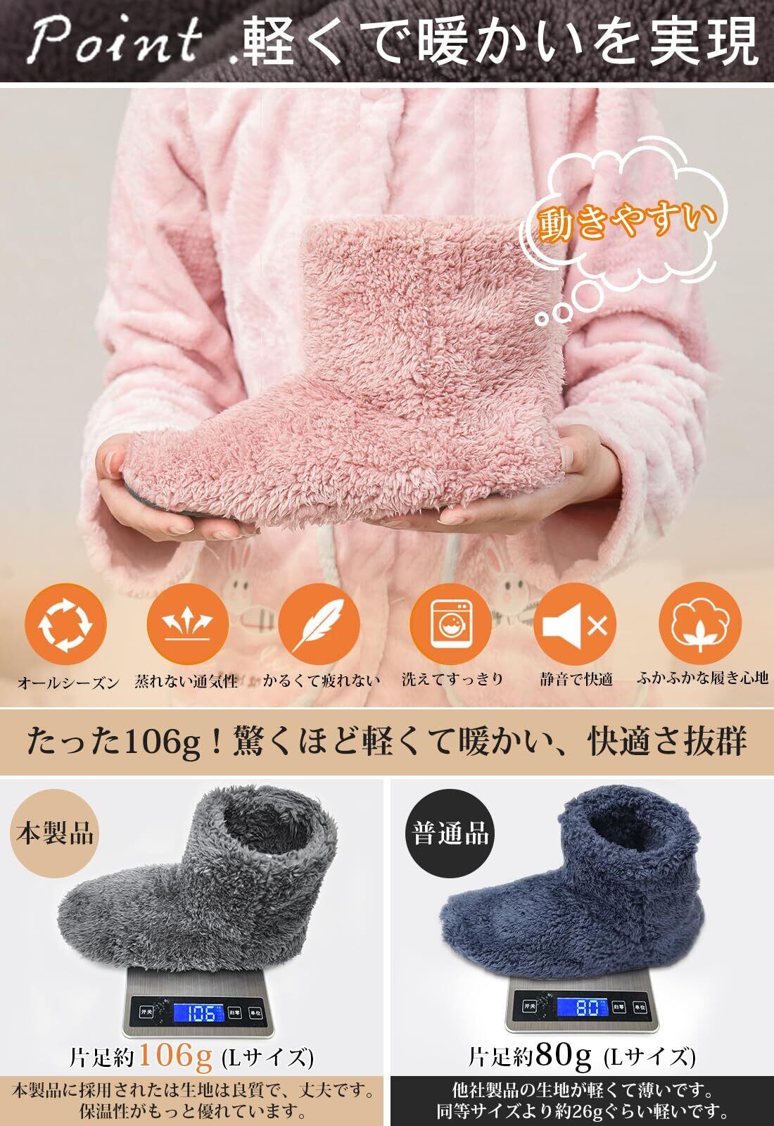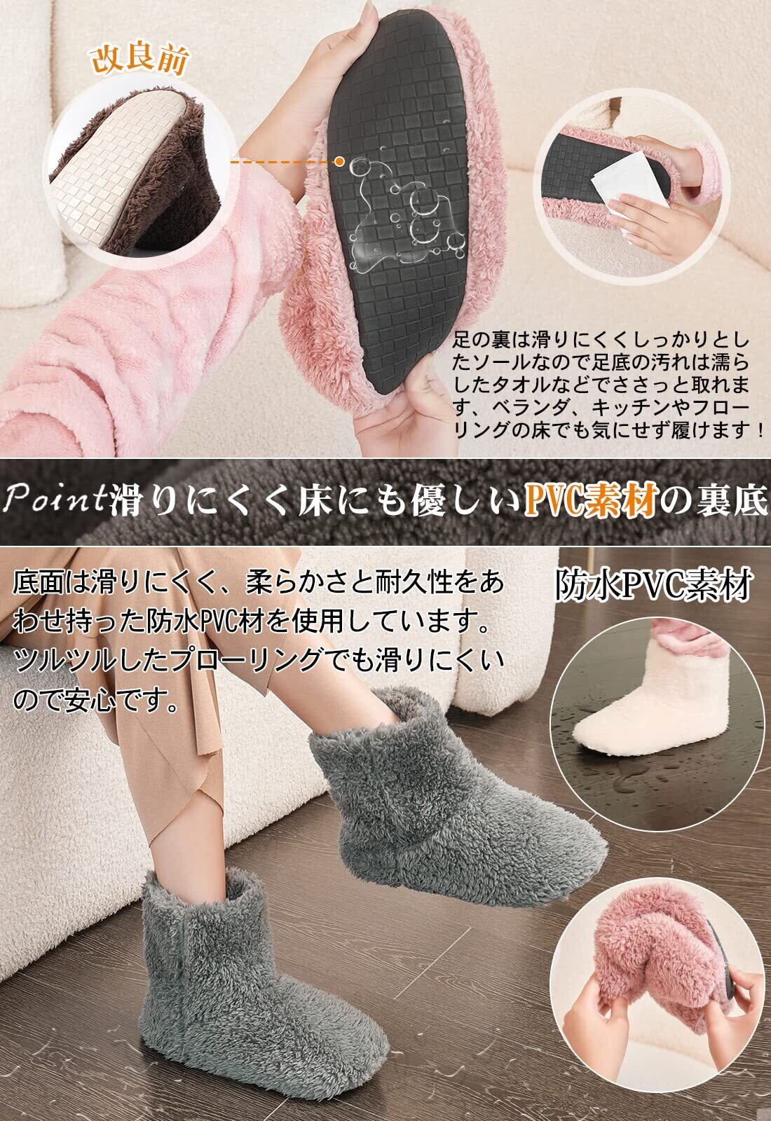 ❄最新年改良版あったかスリッパ【スリッパ 冬用・ツふわふわ暖かい・やわらかで脱ぎ履きしやすく】改良1:ツふわふわ暖かい:包み込まれるようなフィット感と、とろける履き心地が魅力のルームシューズです。極細繊維の中にたくさんの空気を逃さず含まれるので、保温力が高くなっています。冷え性な方にオススメ!改良2:脱ぎ履きしやすい&広い間口で:日本人の足に多い甲高・幅広に合うようブーツの形状を改良致しました。足首の間口が広いので、ミドルカットのブ-ツでも着脱しやすく脱ぎ履きも楽ちん。起き抜けの朝も、スポッとワンタッチで装着できます。素足で履いても あたたかく、冷え性対策・防寒対策に。脱ぎ履きが簡単にできる形に作られているのもポイント。抗菌防臭・静電気防止加工済み。