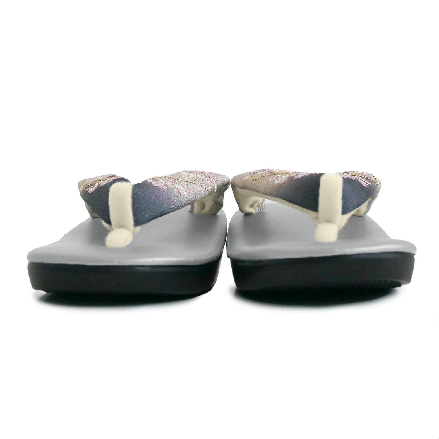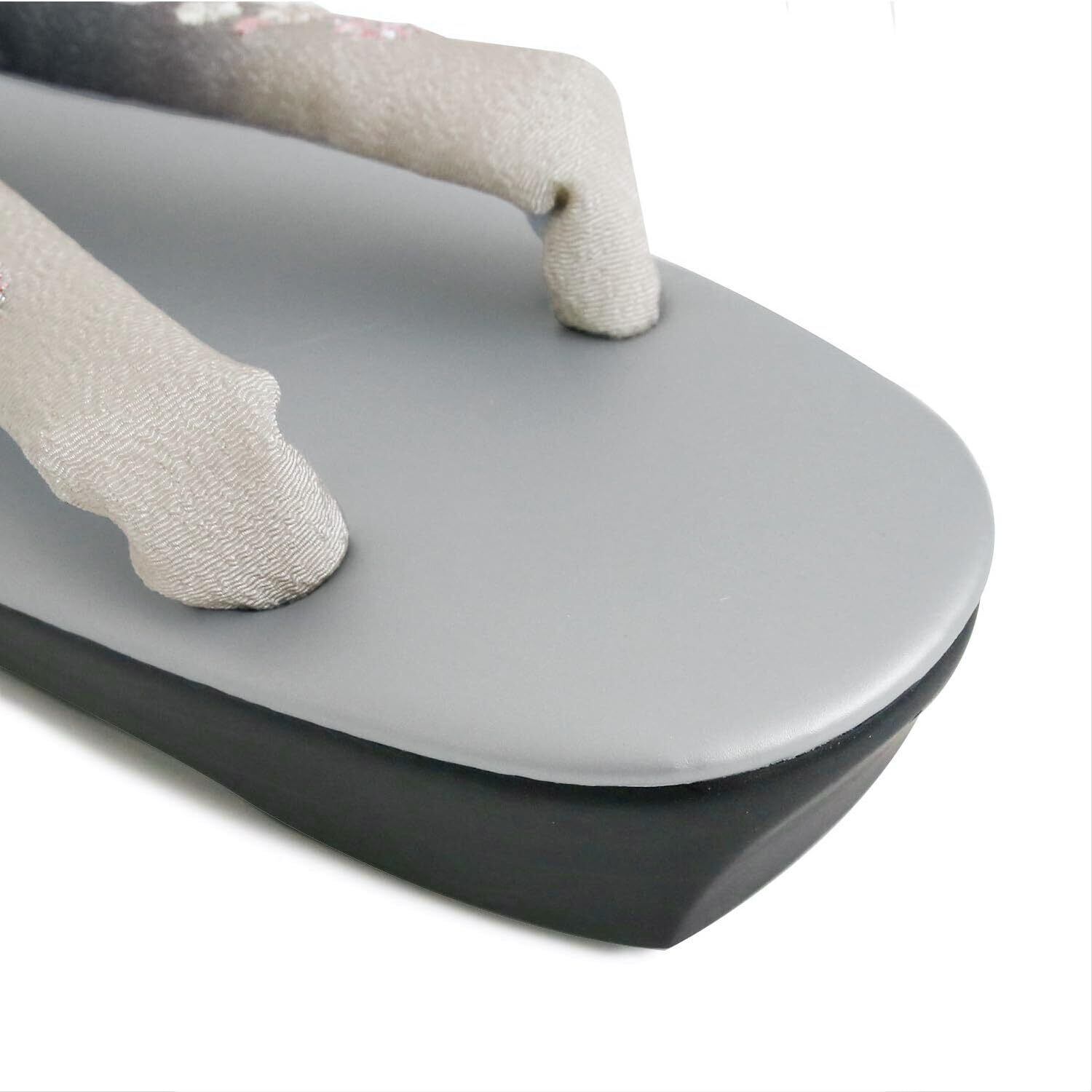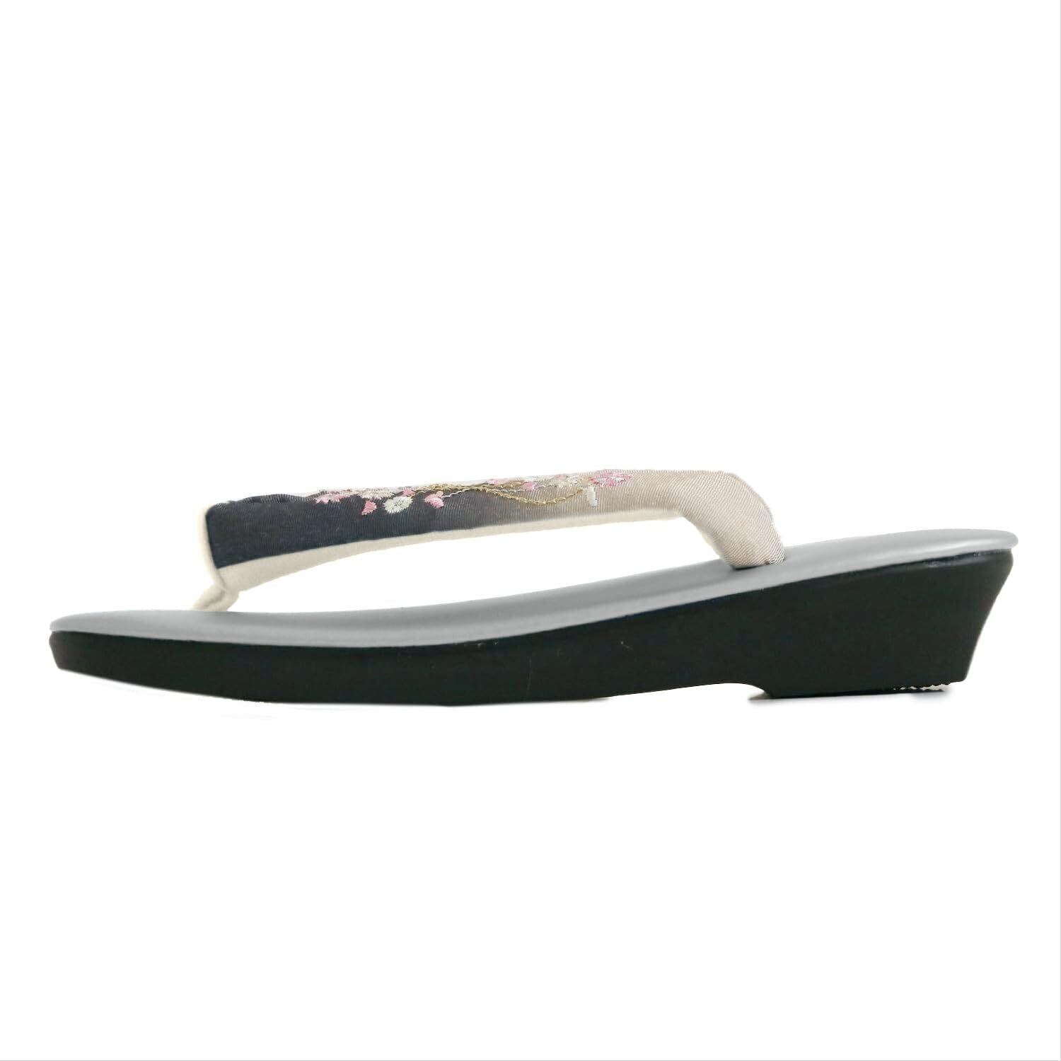 歩きやすく痛くなりにくい。足にフィットする柔らかなウレタン底の女性用草履です。 着物に合わせやすい落ち着いた色合いに、鼻緒の刺繍とグラデーションで上品な印象に。 ※刺繍の柄はお任せとなります。 [適応サイズ]:約22~24cm [素材]:鼻緒:ポリエステル、台:合皮、底:ウレタン [実サイズ]:底全長:約23.5cm、横最長:約8.3cm、ヒール最高:約3.3cm、鼻緒からかかと:約19.5cm、鼻緒からつま先:約3cm