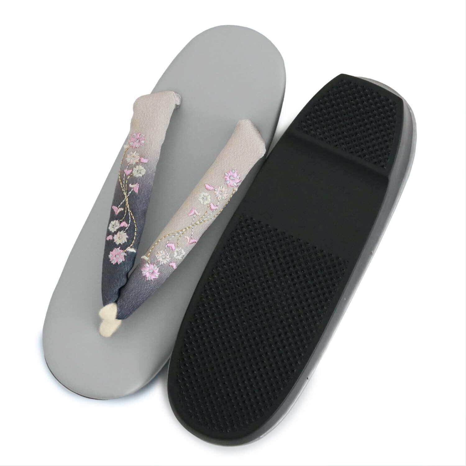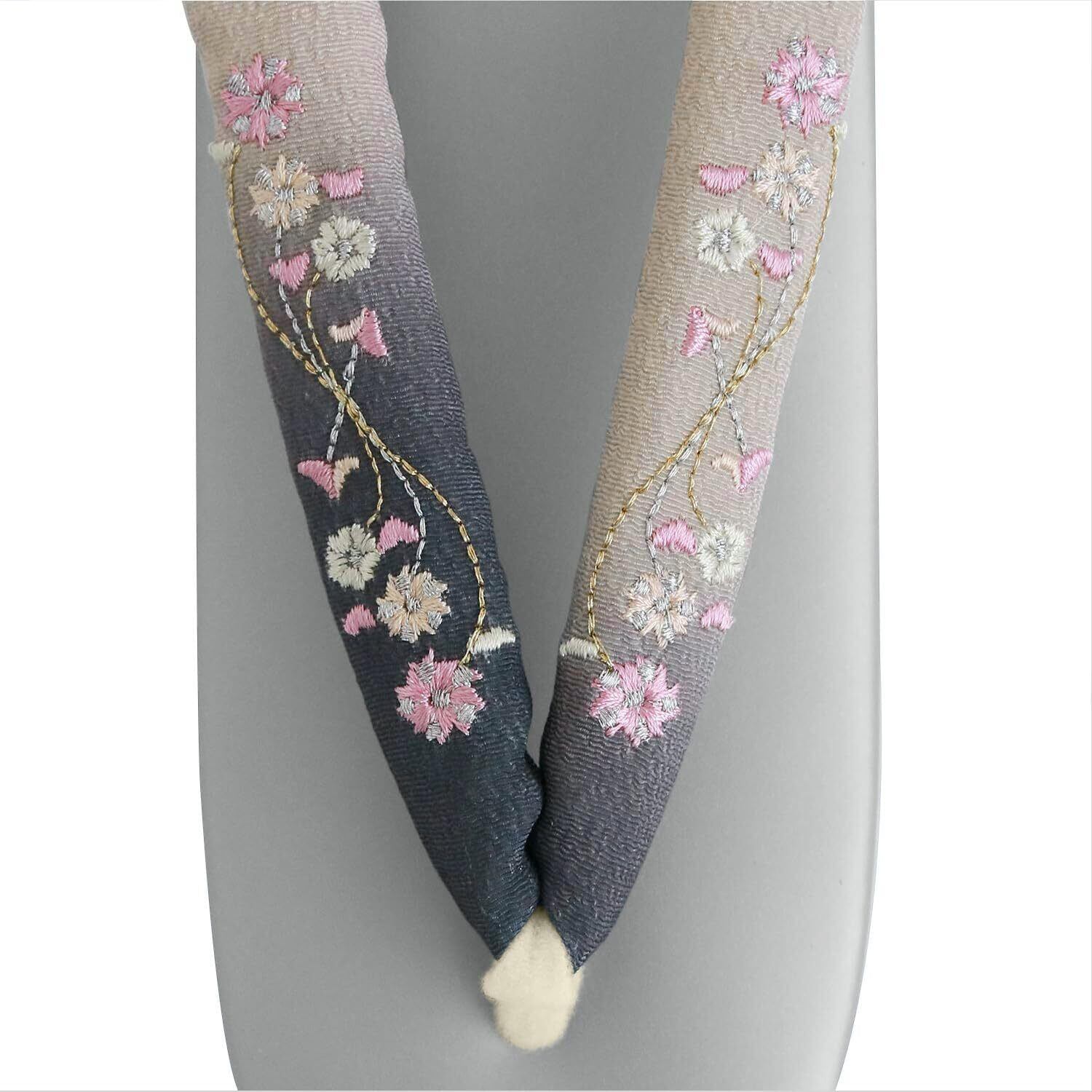 着物に合わせやすい落ち着いた色合いに、鼻緒の刺繍とグラデーションで上品な印象に。
