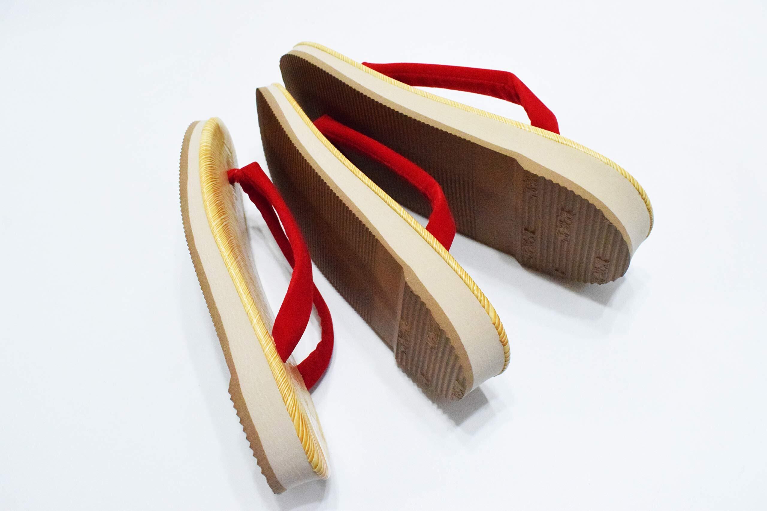 赤 鼻緒 スポンジ 草履(M~LLサイズまで 黄千葉草履 サンド 踊り お稽古 お祭り 雪駄 神社 御子 巫女 サンド底 水場にも強い 大量受注◎)