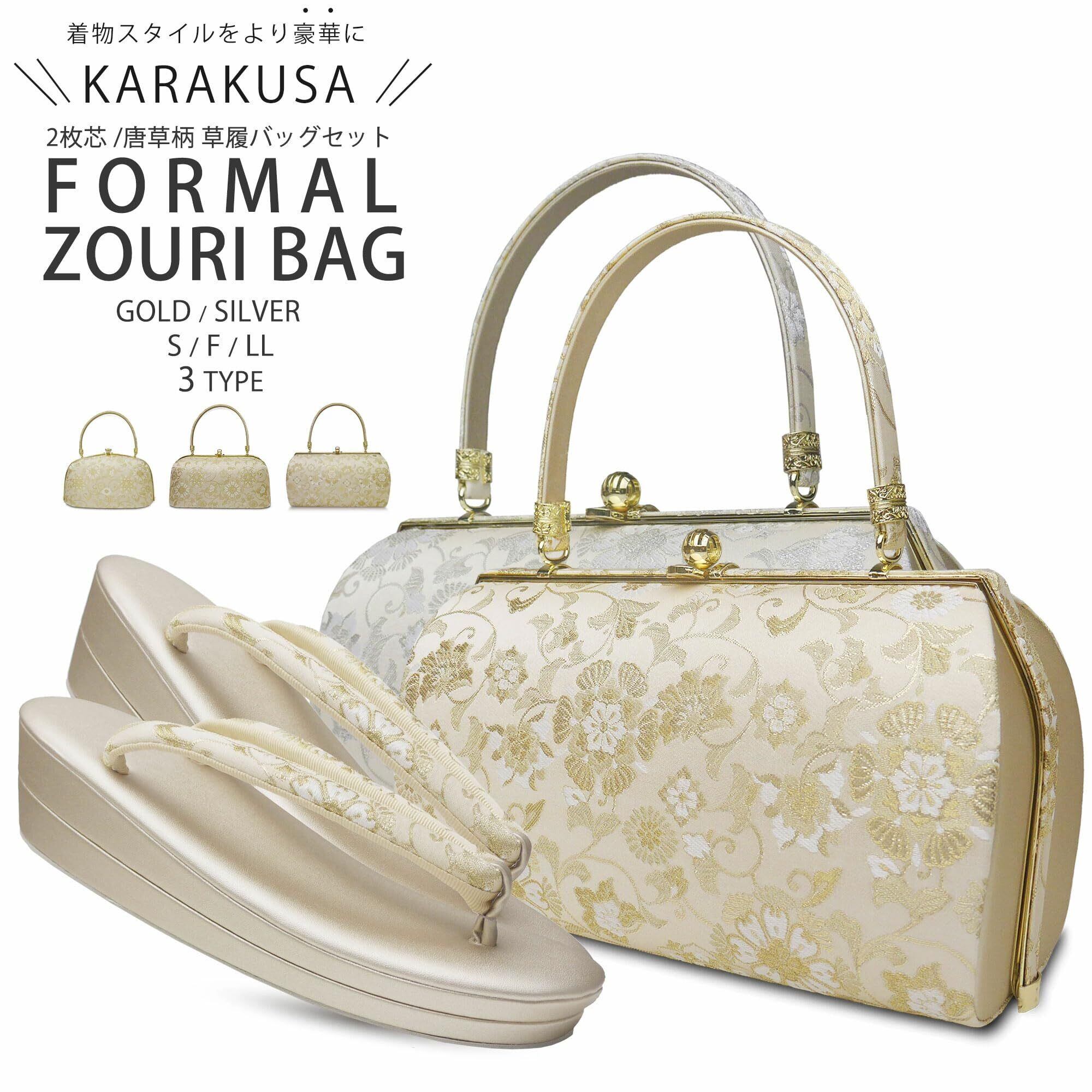 【2022最新】[NISHIORI] 草履バッグ セット 帯地 フォーマル用 二枚芯 レディース 唐草文様 雪輪文様 Sサイズ Freeサイズ LLサイズ 金 銀 2色 3タイプ | 無意味ステッカー