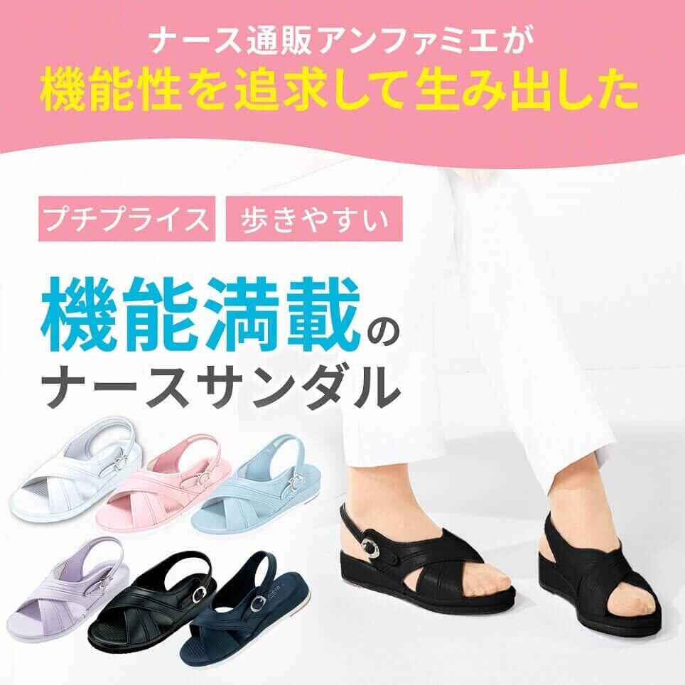 [アンファミエ] ナースサンダル クロス 軽量 疲れにくい 看護 オフィス クッションインソール