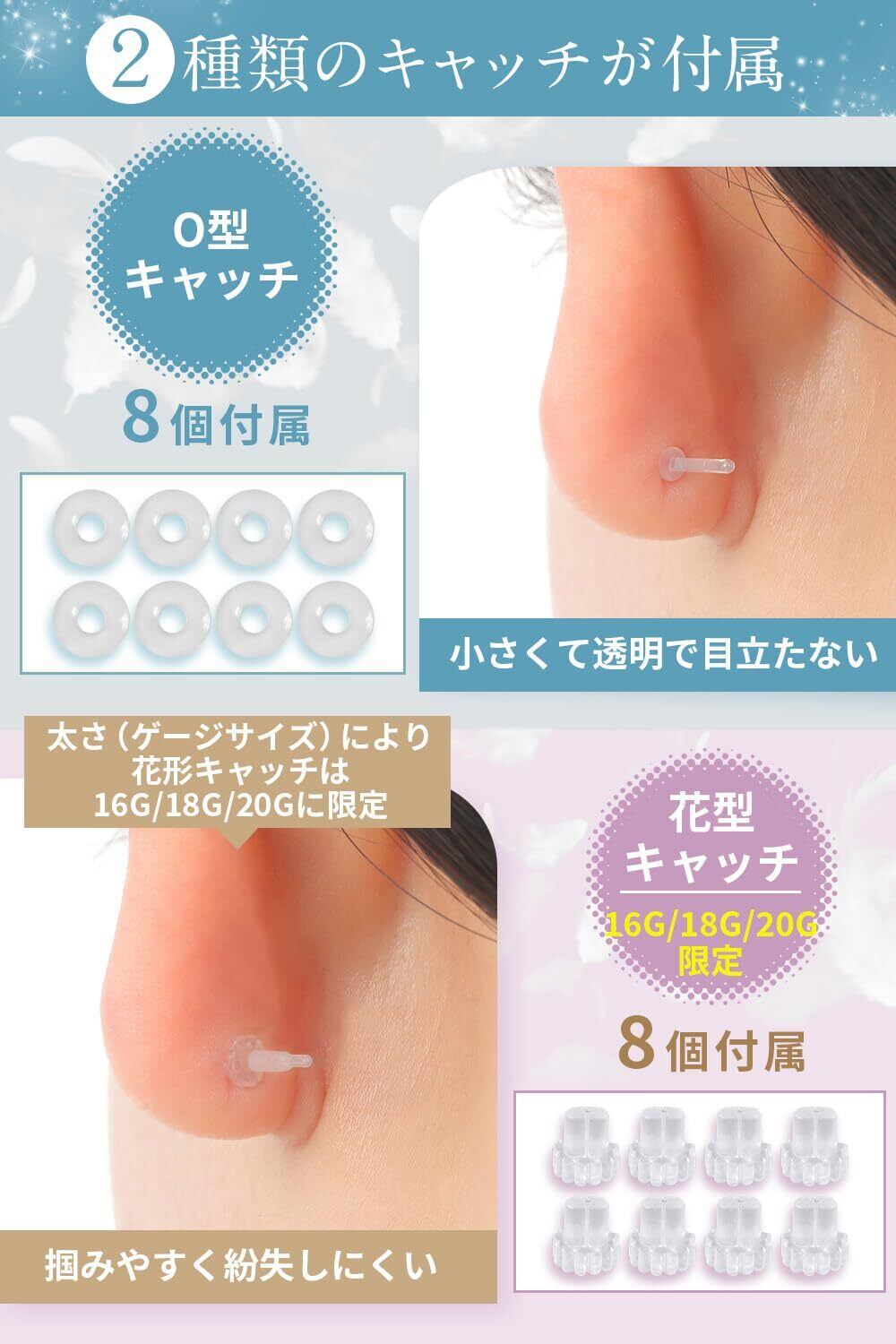 透明ピアス ガラスピアス 耐熱強化ガラス 【4本ピアス+8個キャッチ+8個花型キャッチ】 透ピ ファーストピアス レディース メンズ つけっぱなし キャッチ 付属