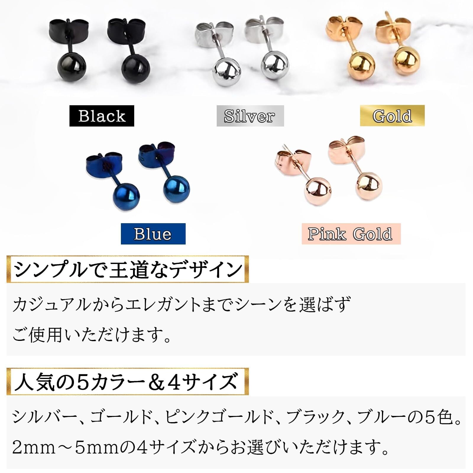 swars ピアス メンズ レディース サージカルステンレス 金属アレルギー対応 丸玉 ボール 両耳用 2個セット (silver 3mm)