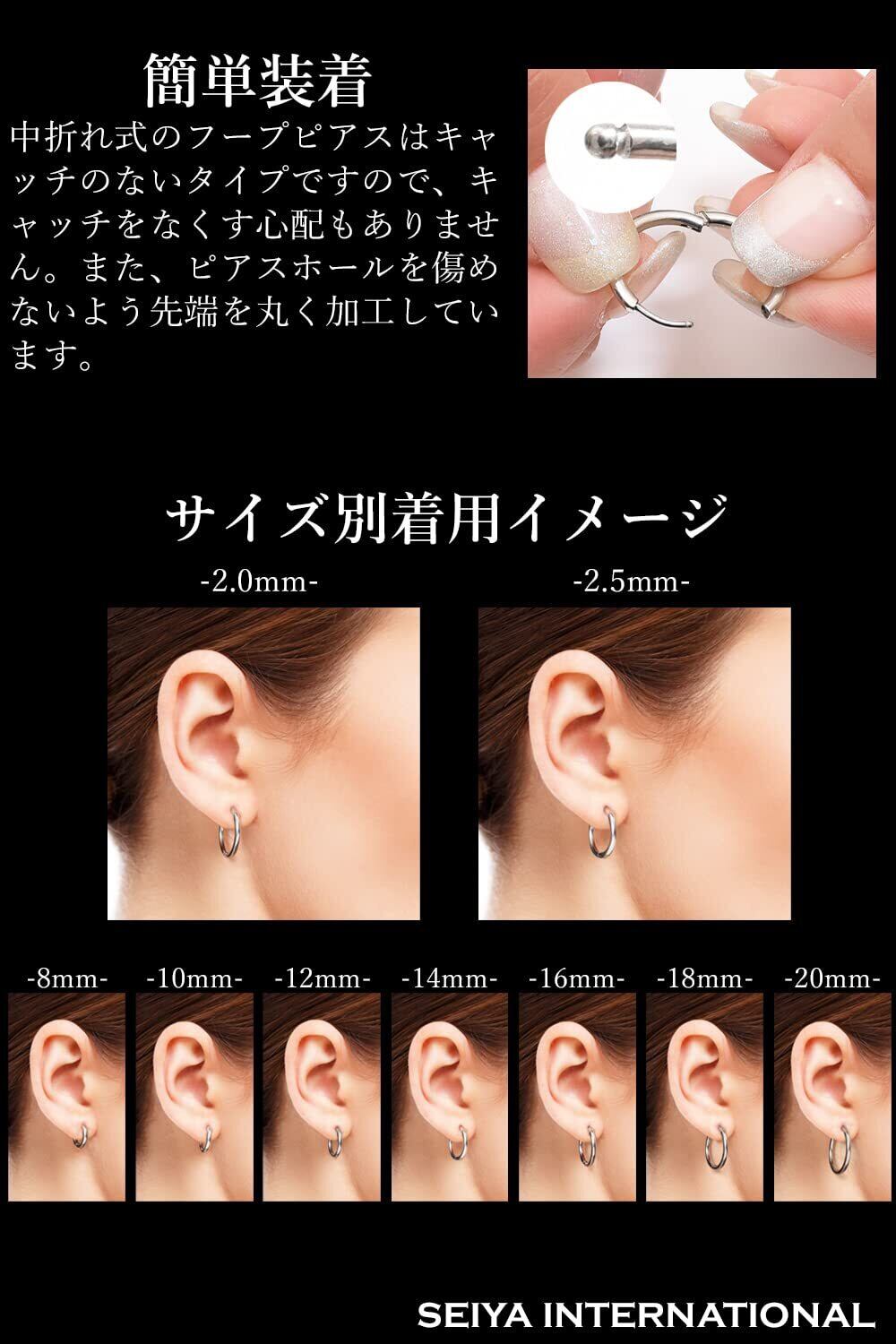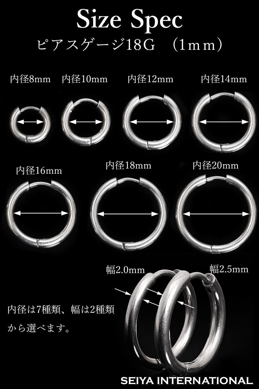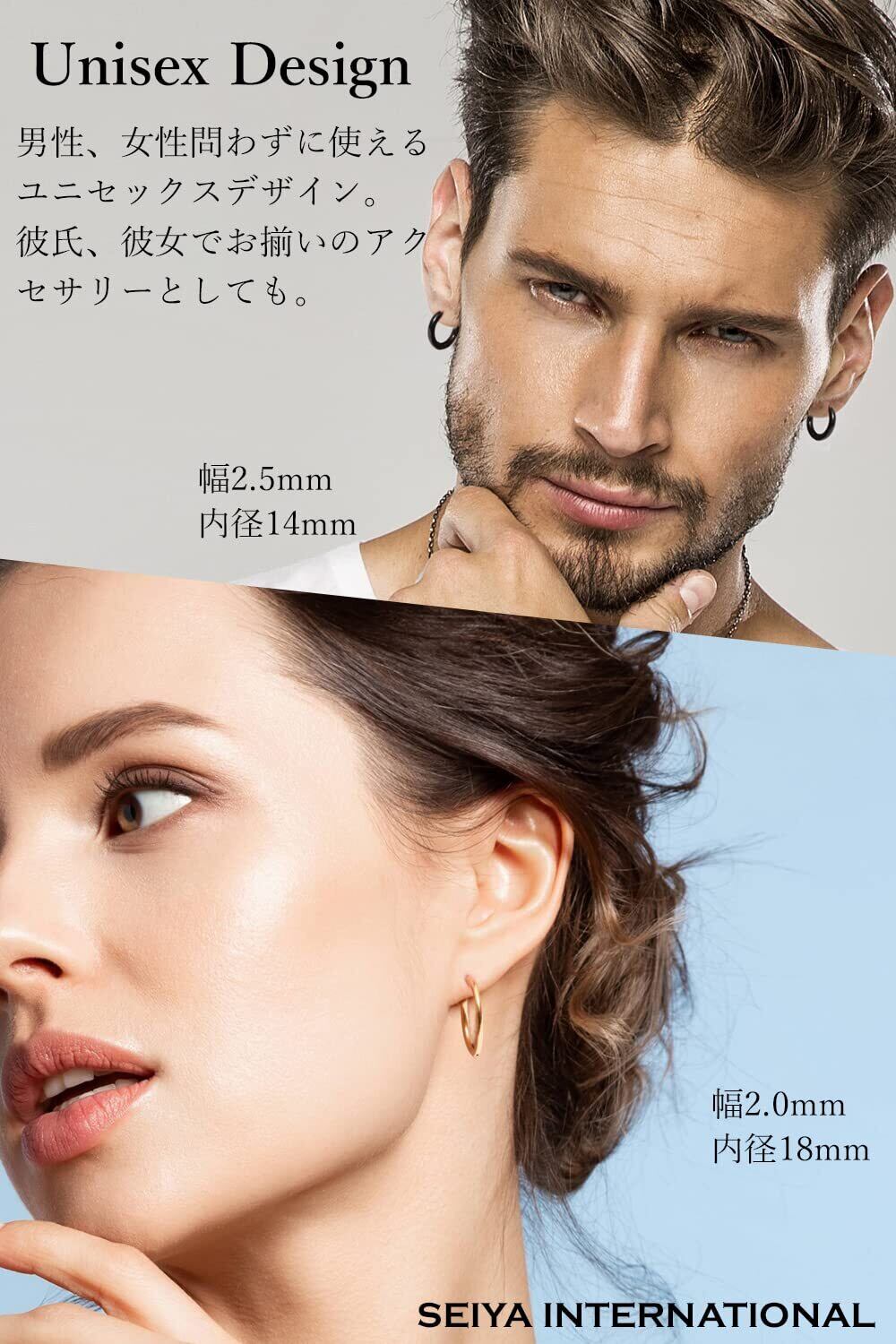 [SEIYA INTERNATIONAL] フープピアス リングピアス ピアス メンズ レディース ステンレス 18G 両耳 2個セット