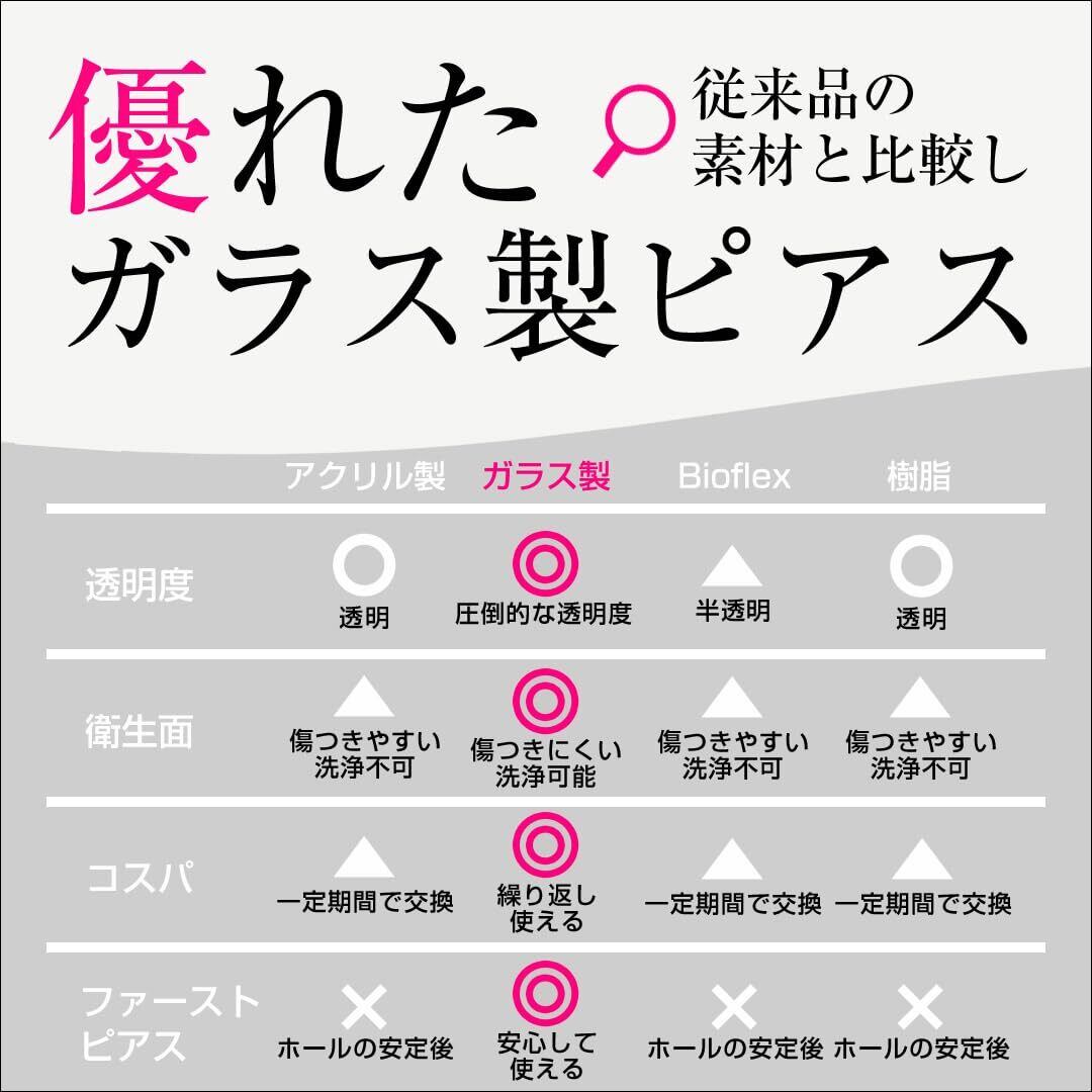 長さは10・12・14mm、太さは16G・18G・20Gからお選びいただけます。 ピアス禁止の職場でも、目立たないから大丈夫。 ガラスピアスは金属よりも目立たずつけっぱなしにできるから、ホールが安定。 メンテも楽ちんです。
