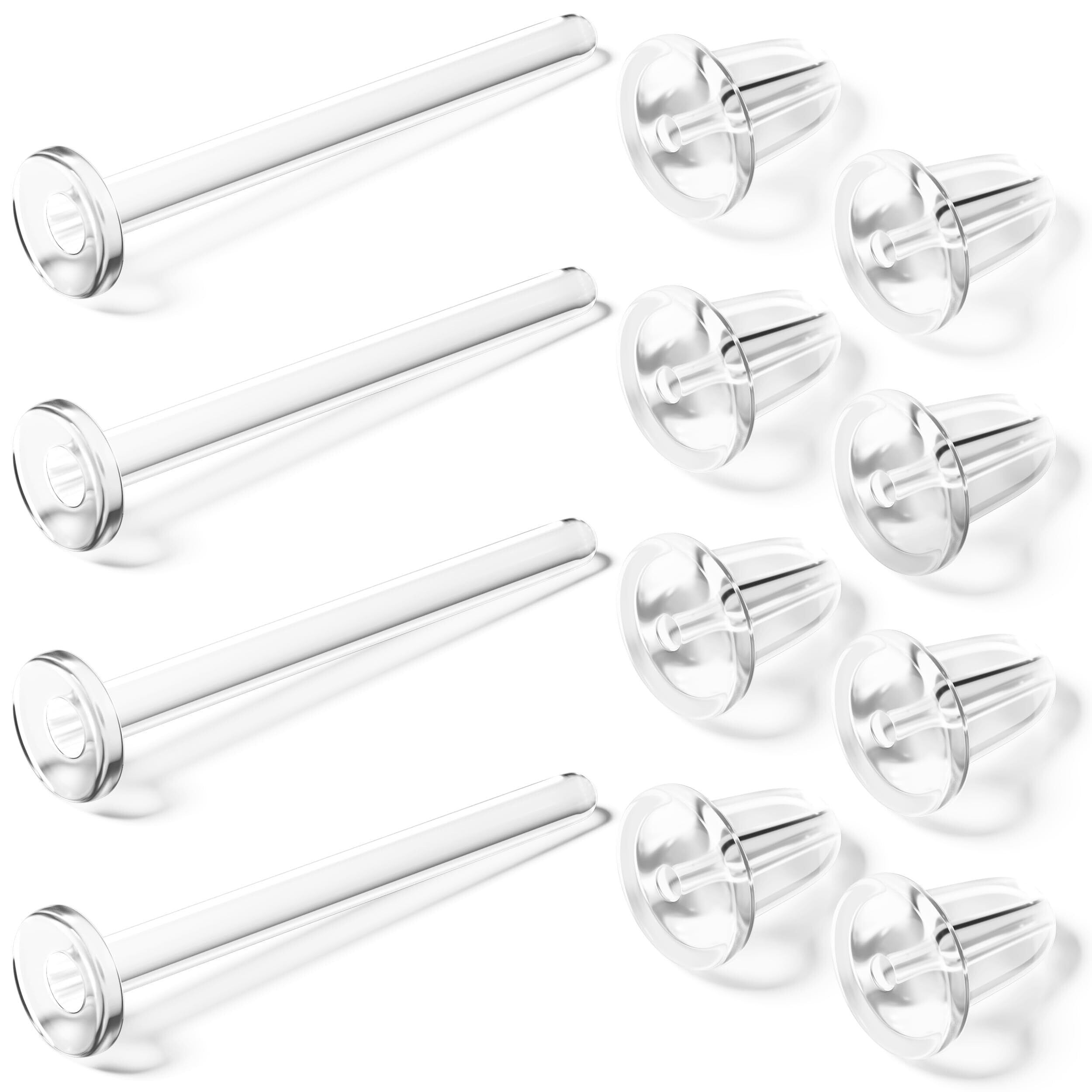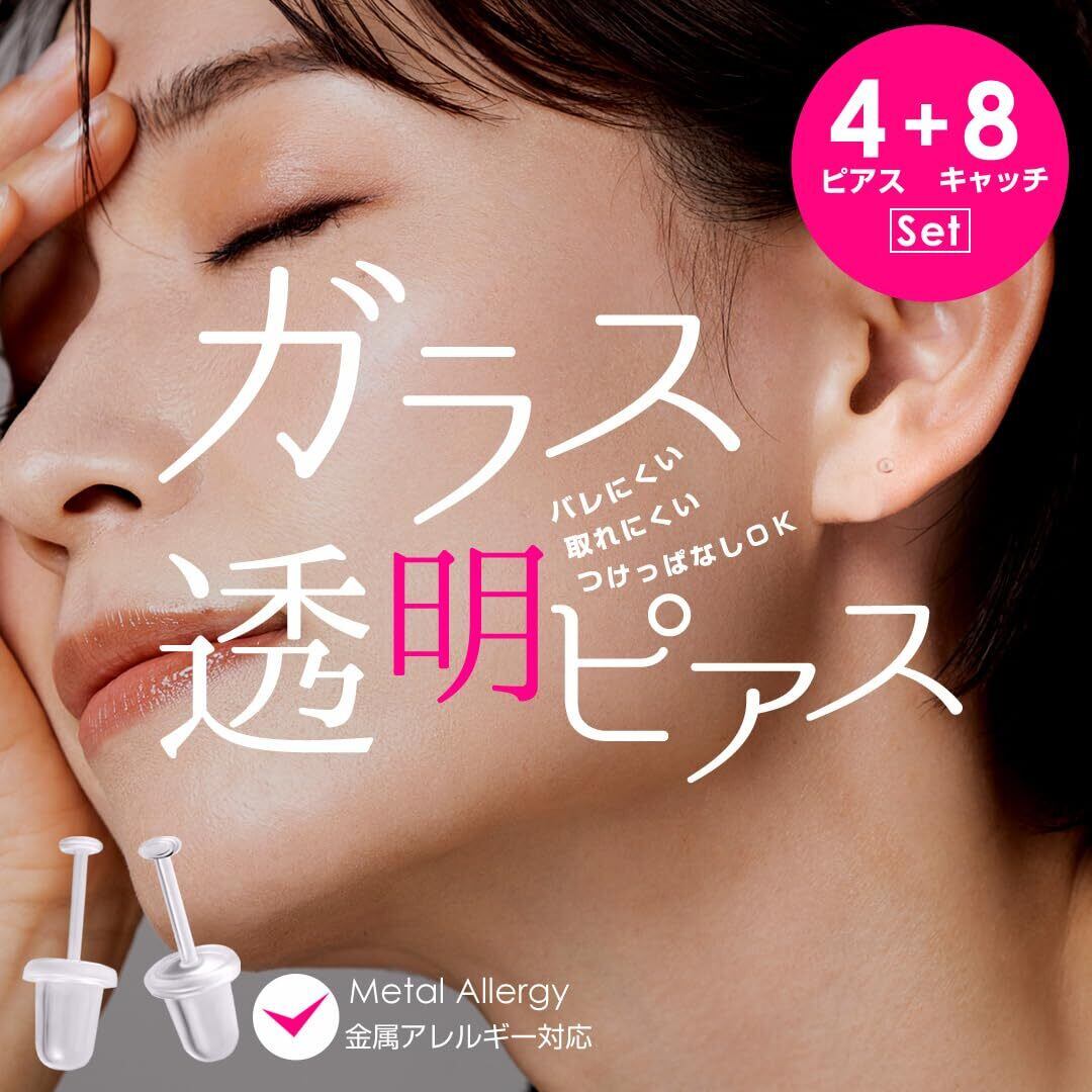 [Raplu] 透明ガラスピアス 毎日使いやすい つけっぱなしOK 金属アレルギー対応 職場用 4本+キャッチ8個