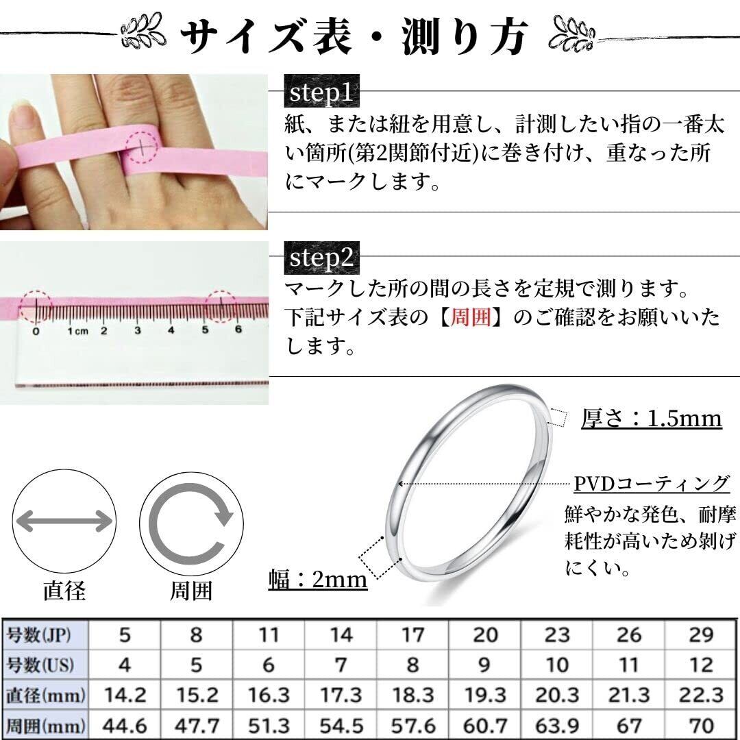 【人気のシンプルデザイン】シンプルで丸みのある甲丸デザイン。指輪の幅のサイズは2mm。細身で主張しすぎないサイズのため、オフィスカジュアルから普段使い、結婚式、パーティーなどのドレスアップスタイル、様々なシーンでご使用いただける人気のファッションリングです。またユニセックスデザインのため、男性にも女性にもおすすめです。