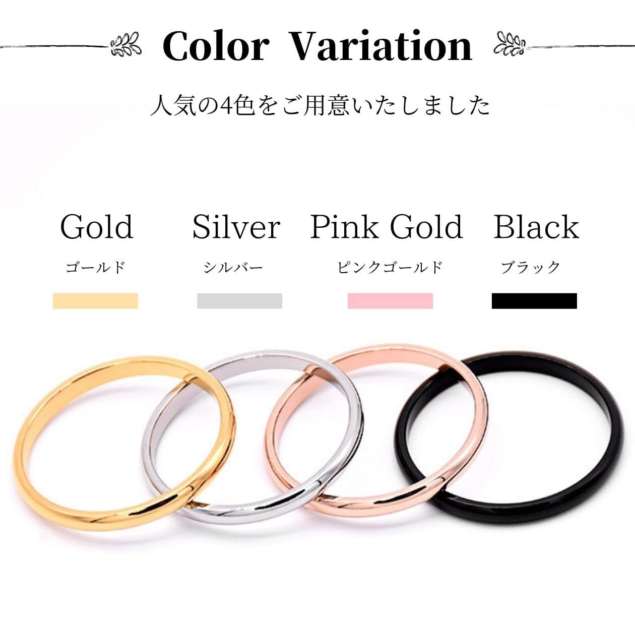 【選べる4color】指輪のカラーはシルバー、ゴールド、ブラック、ピンクゴールド、人気の4色からお選びいただけます。複数のカラーを重ね付けすることで、より華やかな印象を演出することが可能です。また、表面に強固なコーティングを作るPVDコーティングにより、剥げにくく、鮮やかな輝きを長く保持することが可能です。