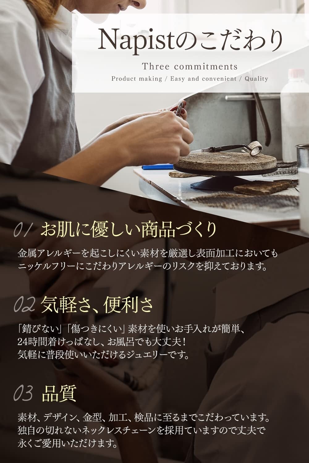 【引っ張っても切れにくい ネックレス チェーン 】一般的なネックレスチェーンはチェーンと金具を接続している丸カンが開いて切れやすい問題がありましたが、ナピストの ネックレス チェーン は丸カンの接合部を溶接することで強い力が加わっても切れにくく当社実験で約4倍の強度を持っていますのでより長くお使い頂けます。