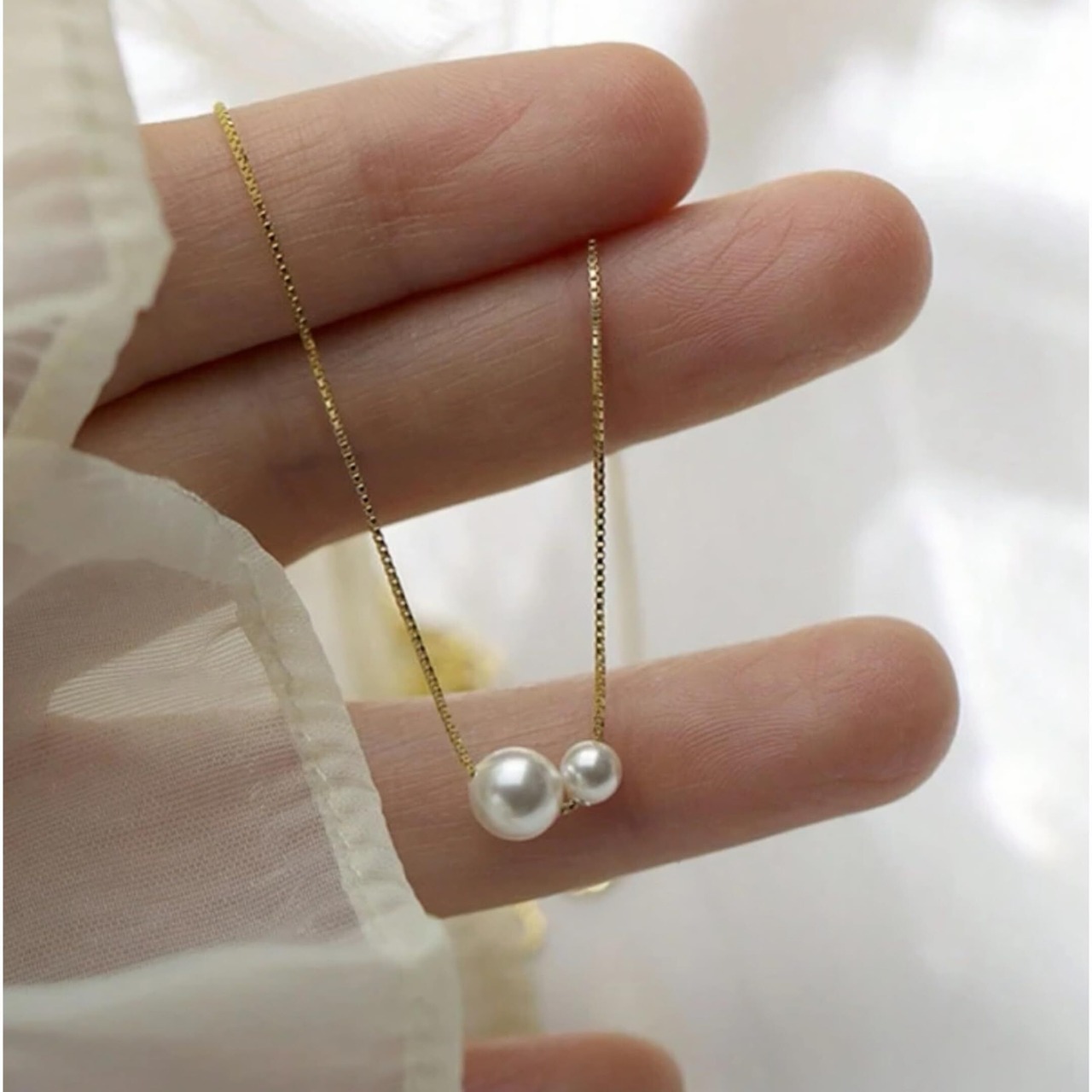 [Hothrty] パールネックレス レディース 真珠 クリスタルパール ベネチアチェーン 金属アレルギー対応 冠婚葬祭 調節可能 ギフトBOX付き