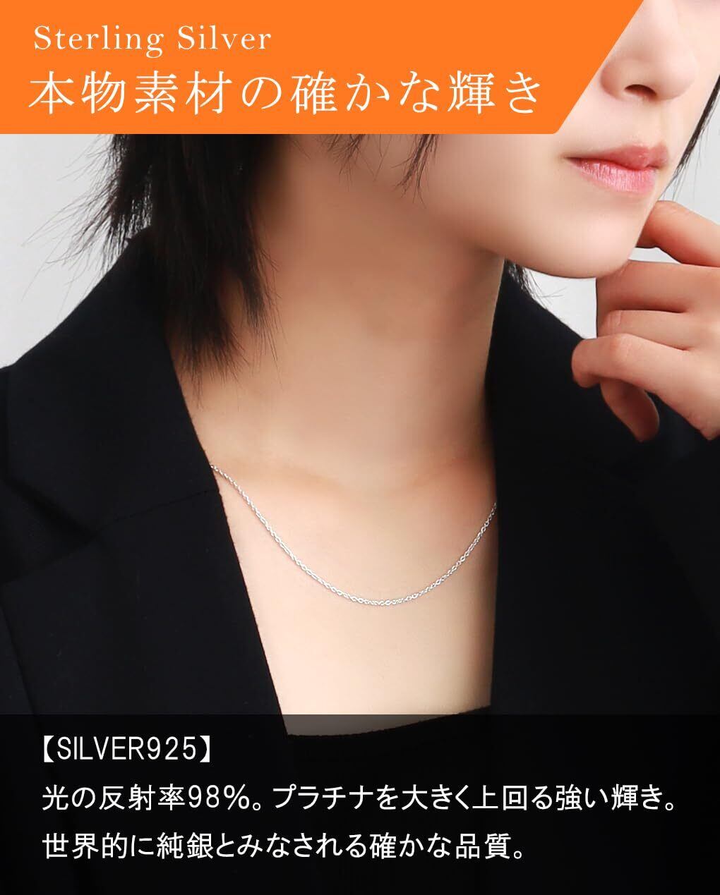 【Silver925素材】シルバーは実は真っ白な金属。SILVER925とは92.5%銀を含んだ銀合金です。他の金属や合金などと比べ、輝きが強いのが特徴で光の反射率は98%とプラチナの60%を大きく上回るほどです。耐久性と輝きの良い状態にするために合金化されたもので、世界のシルバーブランドのほとんどがSILVER925を使用しています。