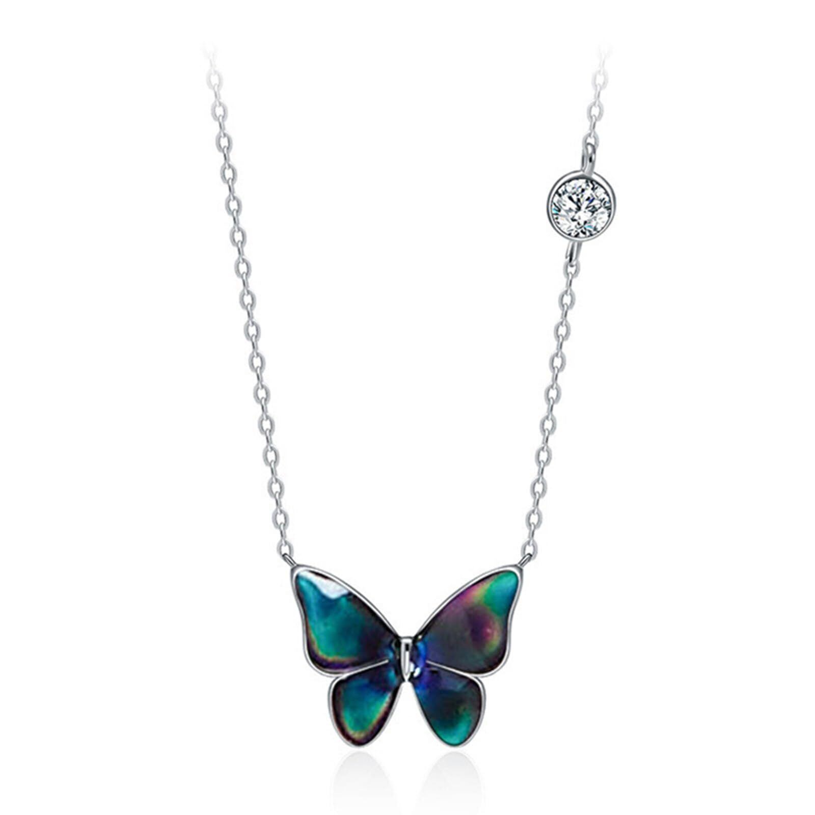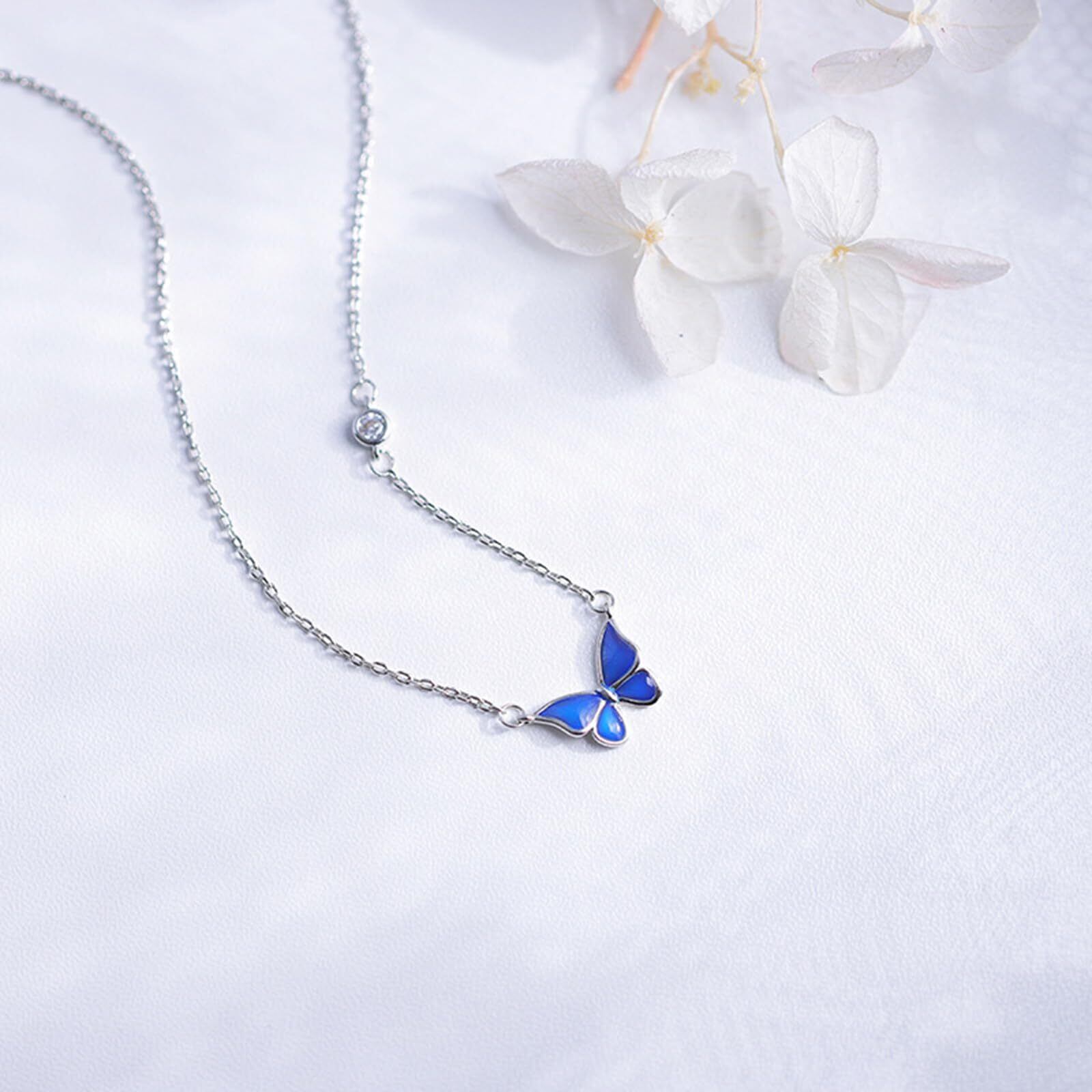 Aonklot バタフライペンダントネックレス ムードネックレス 温度検知ネックレス 色が変わるネックレス クリスタルネックレス ギフト