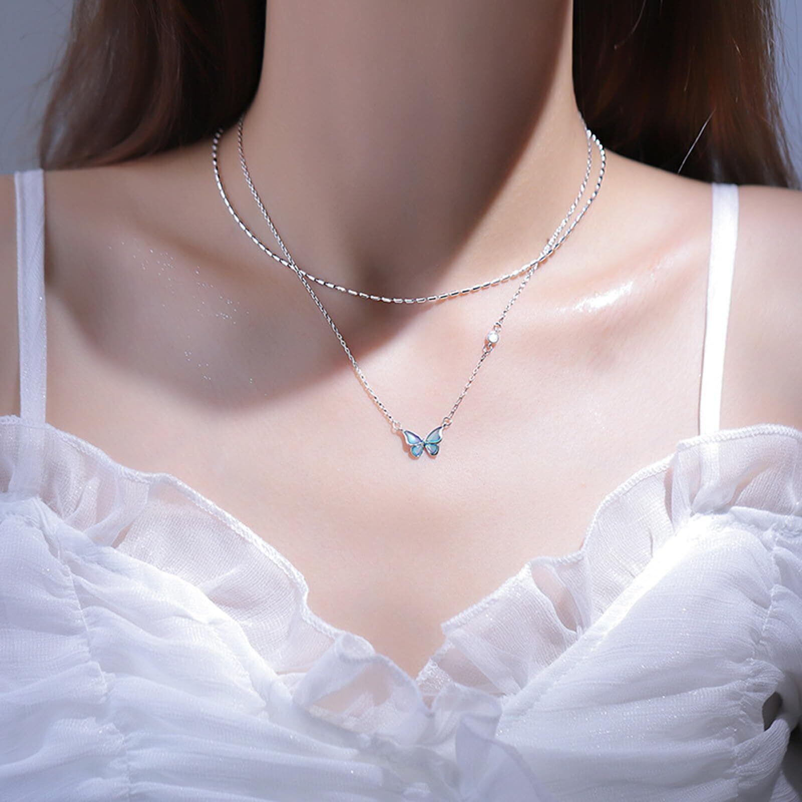 【シルバームードネックレス】このバタフライペンダントシルバーレディースネックレスは、首の曲線を強調し、あなたの絶妙で優しい味を示します。 どんな装いにも魅力的な外観を加えながら、布と合わせることができます。
