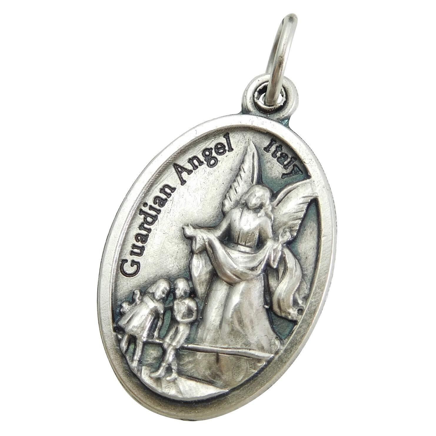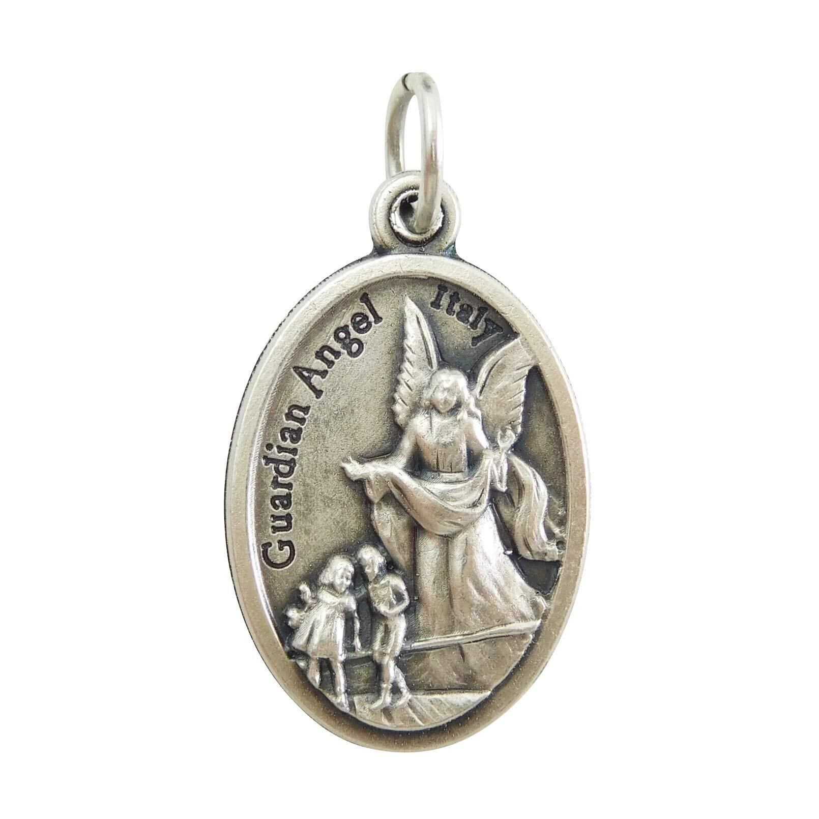 子供たちを見守るガーディアンエンジェル(守護天使)のメダイです。 裏には大天使ミカエルが彫られています。 ストラップやペンダント、ブレスレットチャームに最適のメダイです。 サイズ:縦約2.55(2.15)cm×横約1.6cm