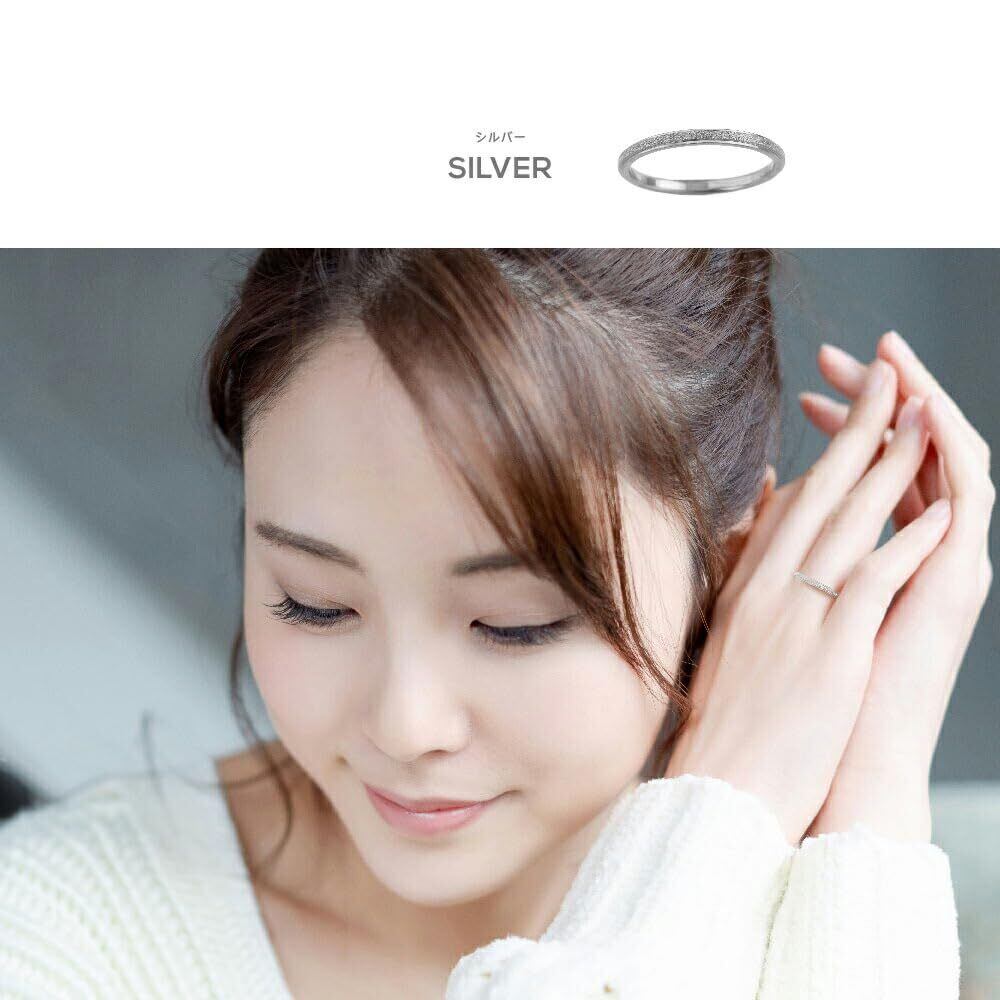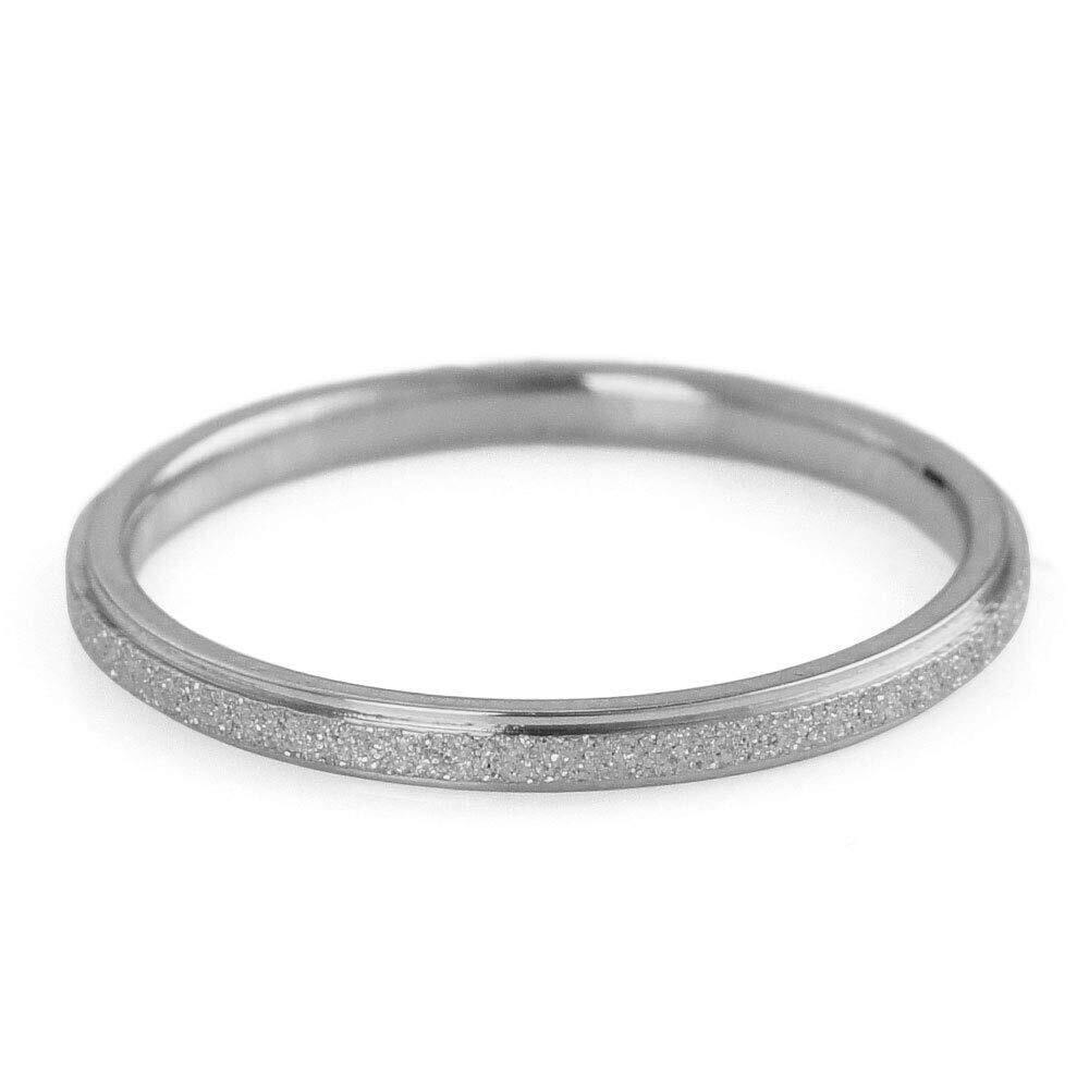 スリムタイプの指輪の表面にちいさな凹凸をつけてきらきらと輝く特殊加工をした極細のステンレス製のリング