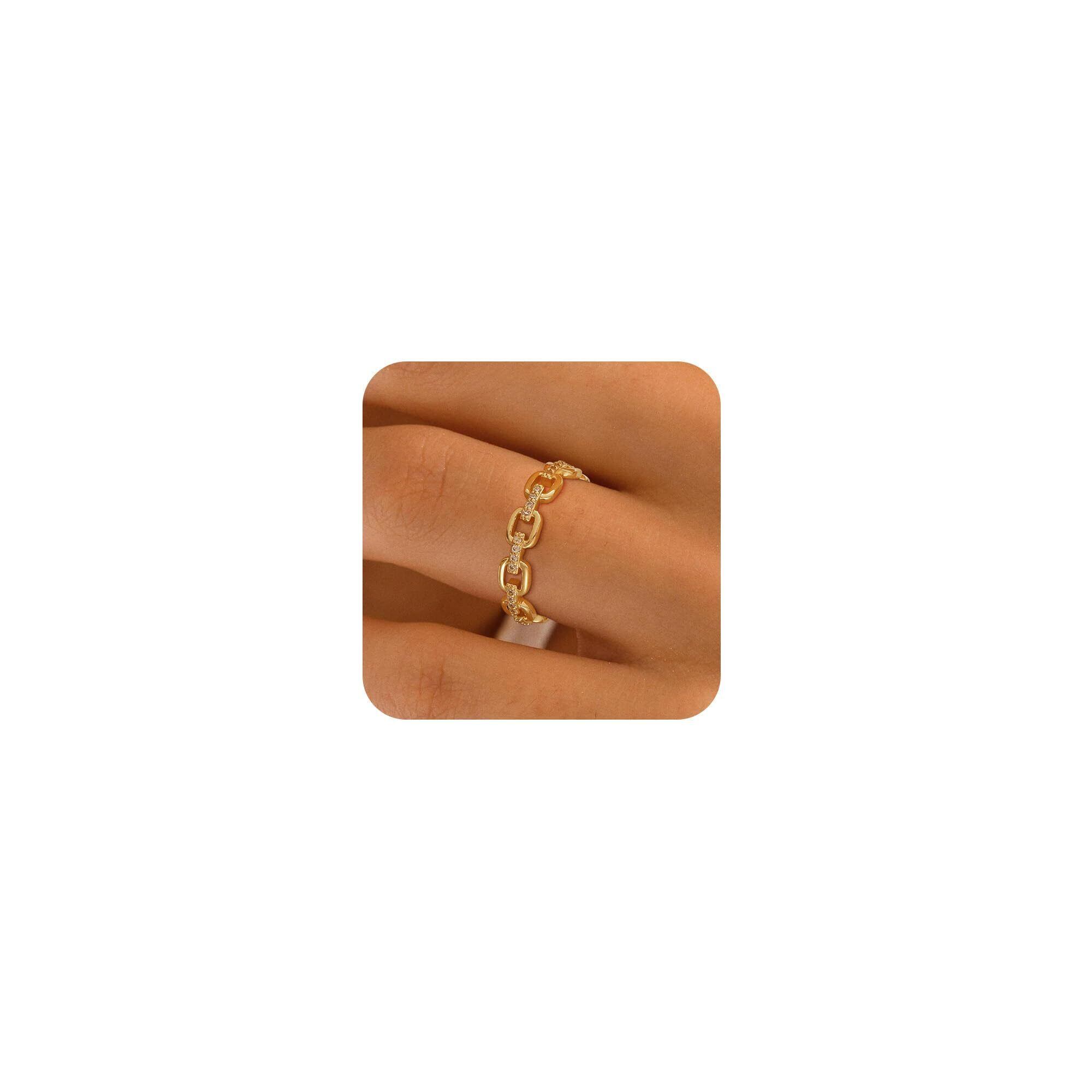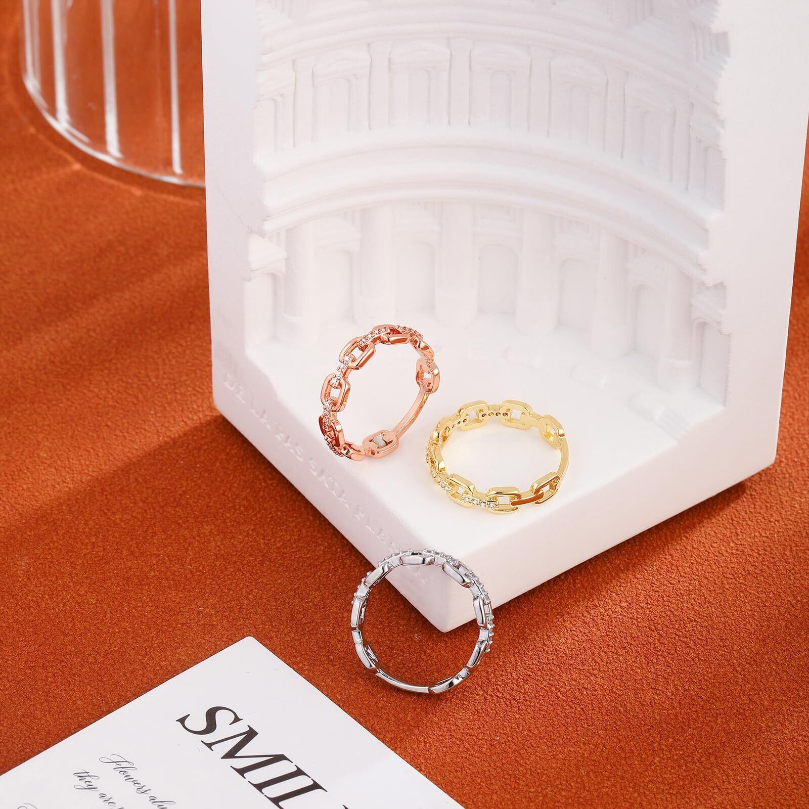 [Hothrty] リング 指輪 レディース ゆびわ ステンレス ゴールド シルバー ピンクゴールド ジルコニア チェーン おしゃれ シンプル 金属アレルギー対応 ギフトBOX付き