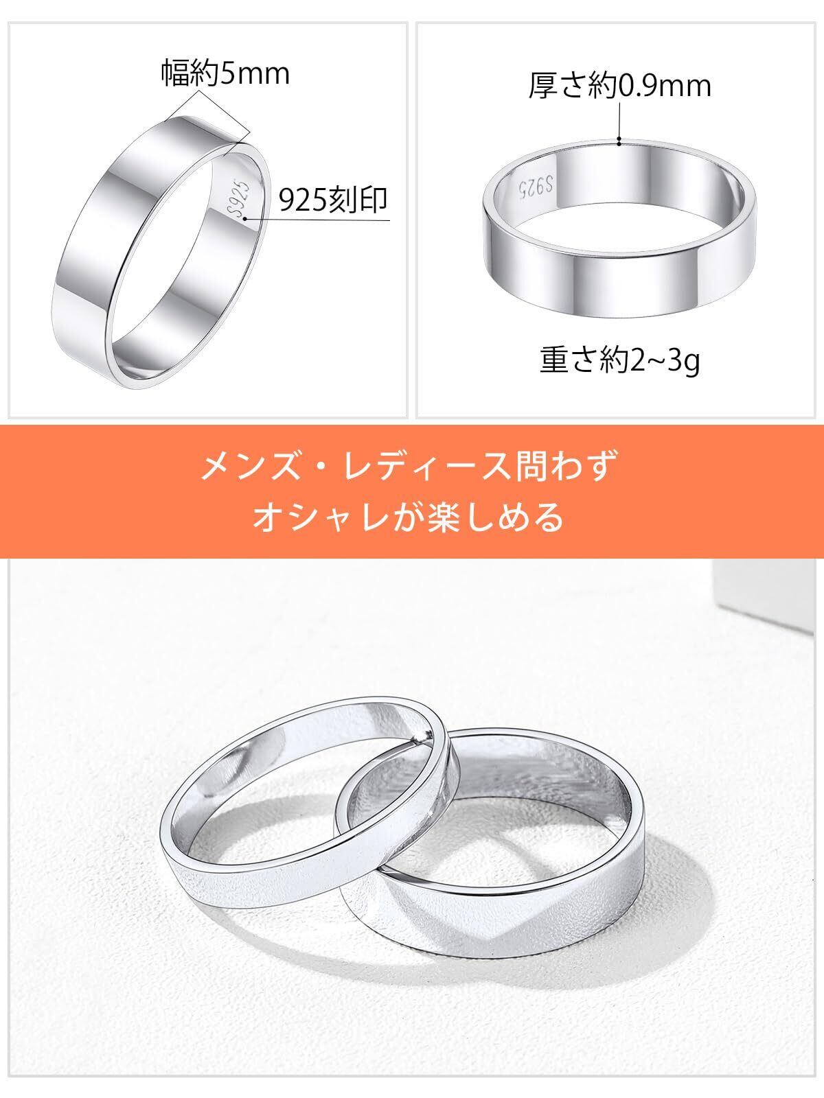 [Silvora] シルバー925 指輪 メンズ シンプル リング レディース 人気 平打ち 幅3ミリ/5ミリ ペアアクセサリー