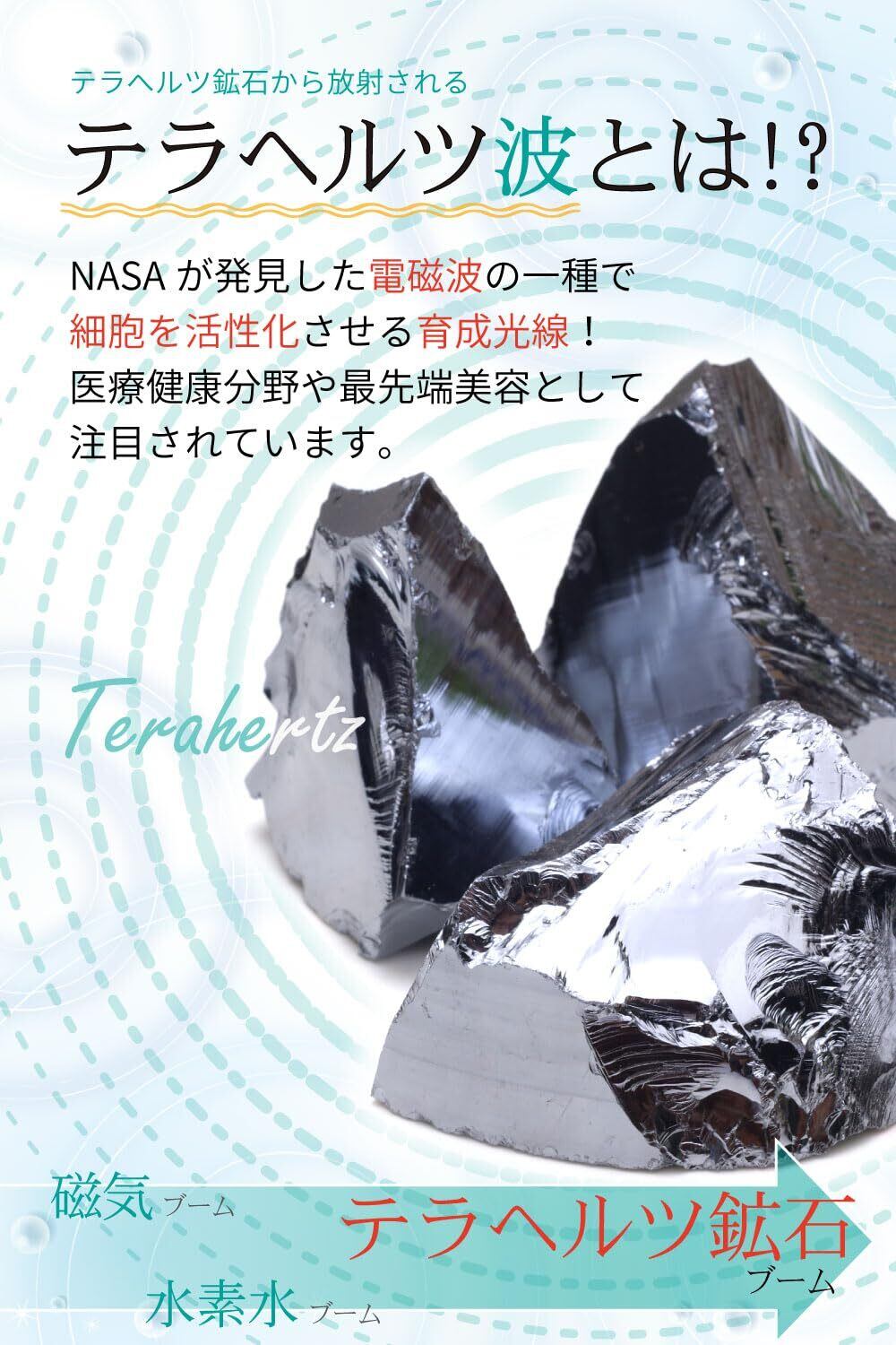 【&ROSY、美STに掲載】OVER-9のテラヘルツ鉱石は今注目の人工鉱石です。1秒間に1兆回もの分子振動が起こる事から、テラ(1兆回1TERA)ヘルツ波(周波数)と言われています。遠赤外線を超えると云われるテラヘルツ波は素晴らしい新エネルギーであり、人体への悪影響もなく植物が腐りにくくなるなど、テラヘルツ波は育成光とも呼ばれています。
