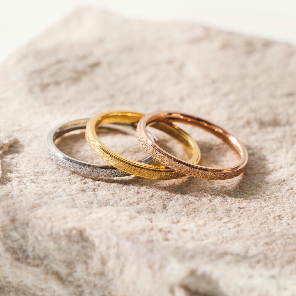 [mico.lor] ステンレス リング (224) 砂目 指輪 レディース 極細 銀色 金色 ピンクゴールド メンズ サージカルステンレス製 316L
