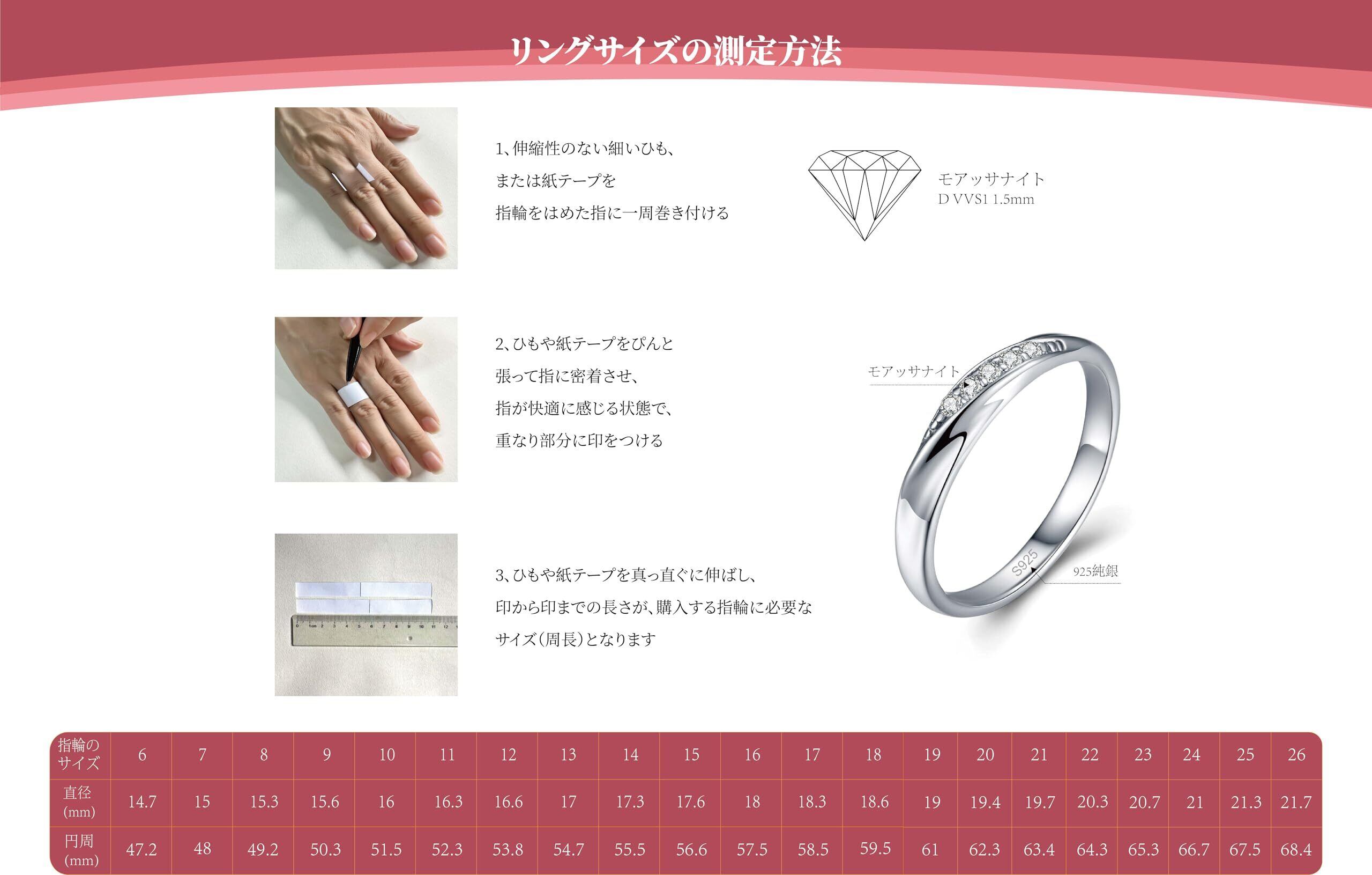 素材:国際標準シルバー925 / モアッサナイト。リングの幅:3MM