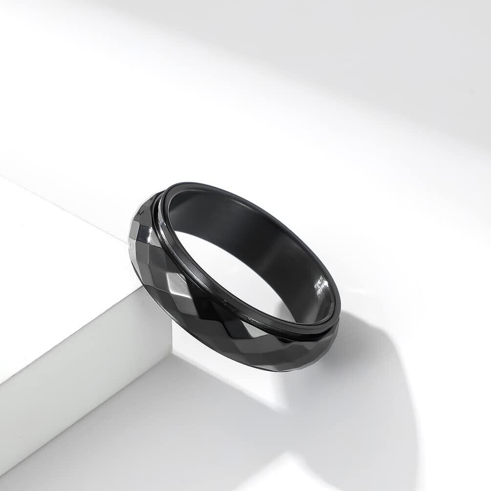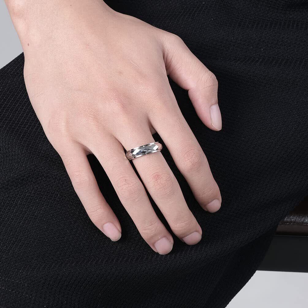 083基地 チタン 指輪 リング 多面カット キラキラ 回転 幅6MM シルバー サイズ8号