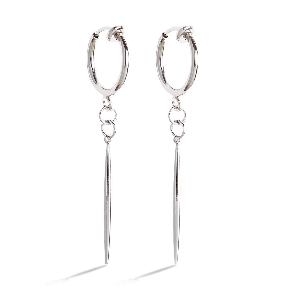 【特価商品】【Puente】 ピアス 穴不要 ティアドロップ フェイクピアス 両耳セット レディースイヤリング 雫 ドロップ スティック イヤリング ノンホールピアス リング リングピアス フープ フープピアス メンズ レディース ロングタイプ シルバー 銀色 | 無意味ステッカー