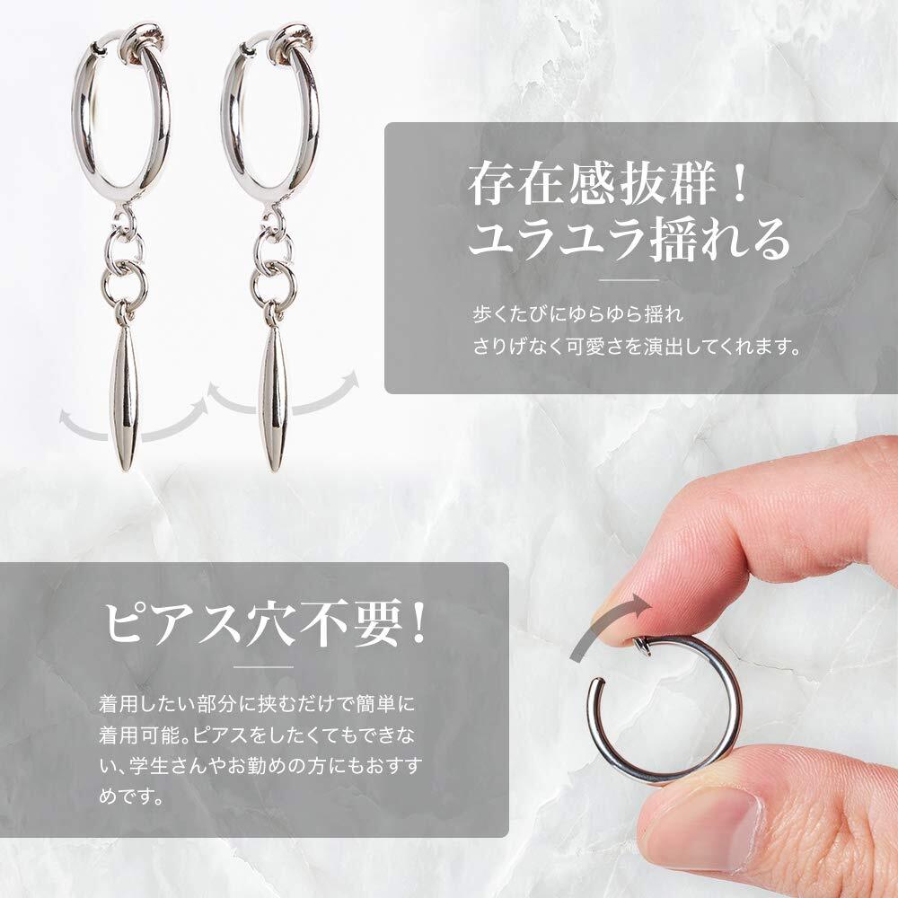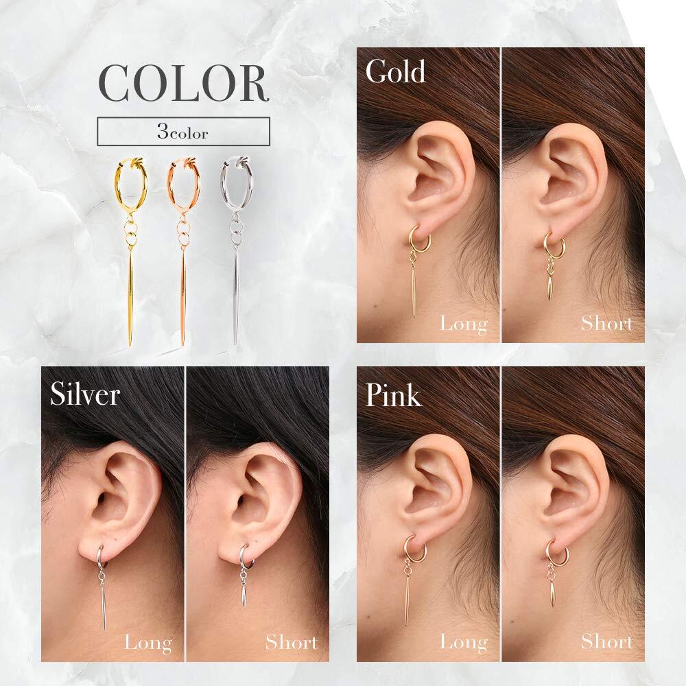 【Puente】 ピアス 穴不要 ティアドロップ フェイクピアス 両耳セット レディースイヤリング 雫 ドロップ スティック イヤリング ノンホールピアス リング リングピアス フープ フープピアス メンズ レディース ロングタイプ シルバー 銀色