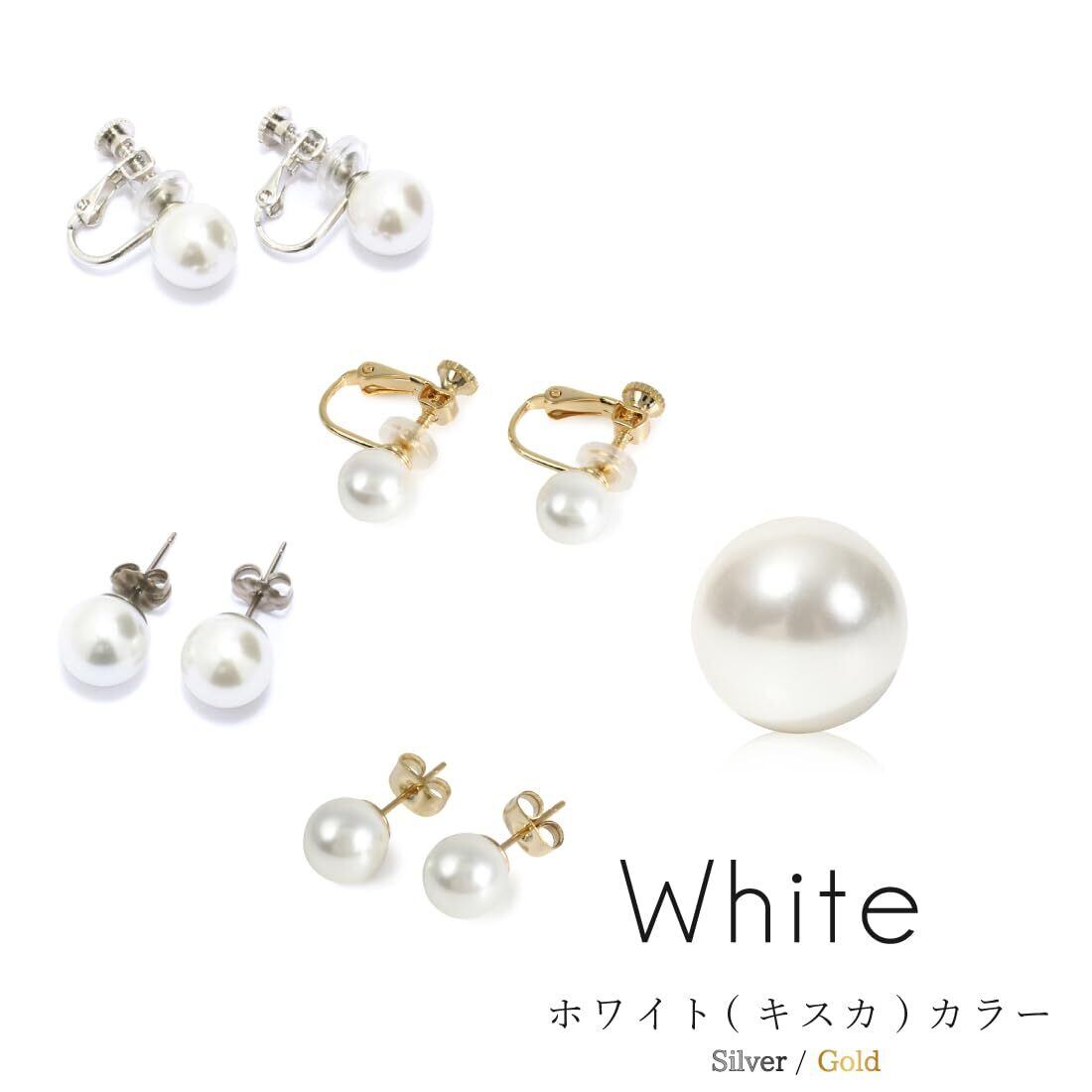 【さまざまなサイズをご用意しました】イヤリングのパール珠はホワイトは6~10mmまで、グレー・ブラックは8mm・10mmサイズをご用意しました。ご利用シーンやお洋服に合わせてお気に入りのサイズが見つかります。さらにシリコンパッド付だから長時間の着用でも痛くなりにくい!! 汚れを拭くミニクロス&イヤリング用ミニ巾着をセットにして、ギフト用にもオススメです。